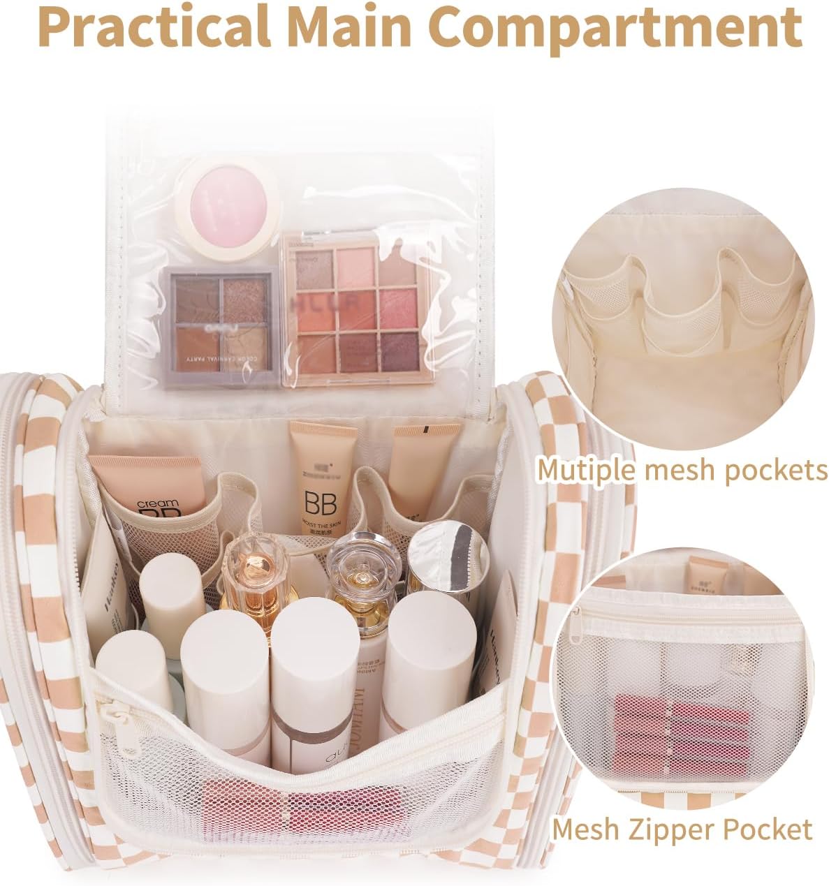 Narwey Checked Hanging Travel Toiletry Bag for Women, Travel Bag for Toiletries, Makeup Bag Organizer Cosmetic Bags Make Up Bags for Women (Light Checkerboard)