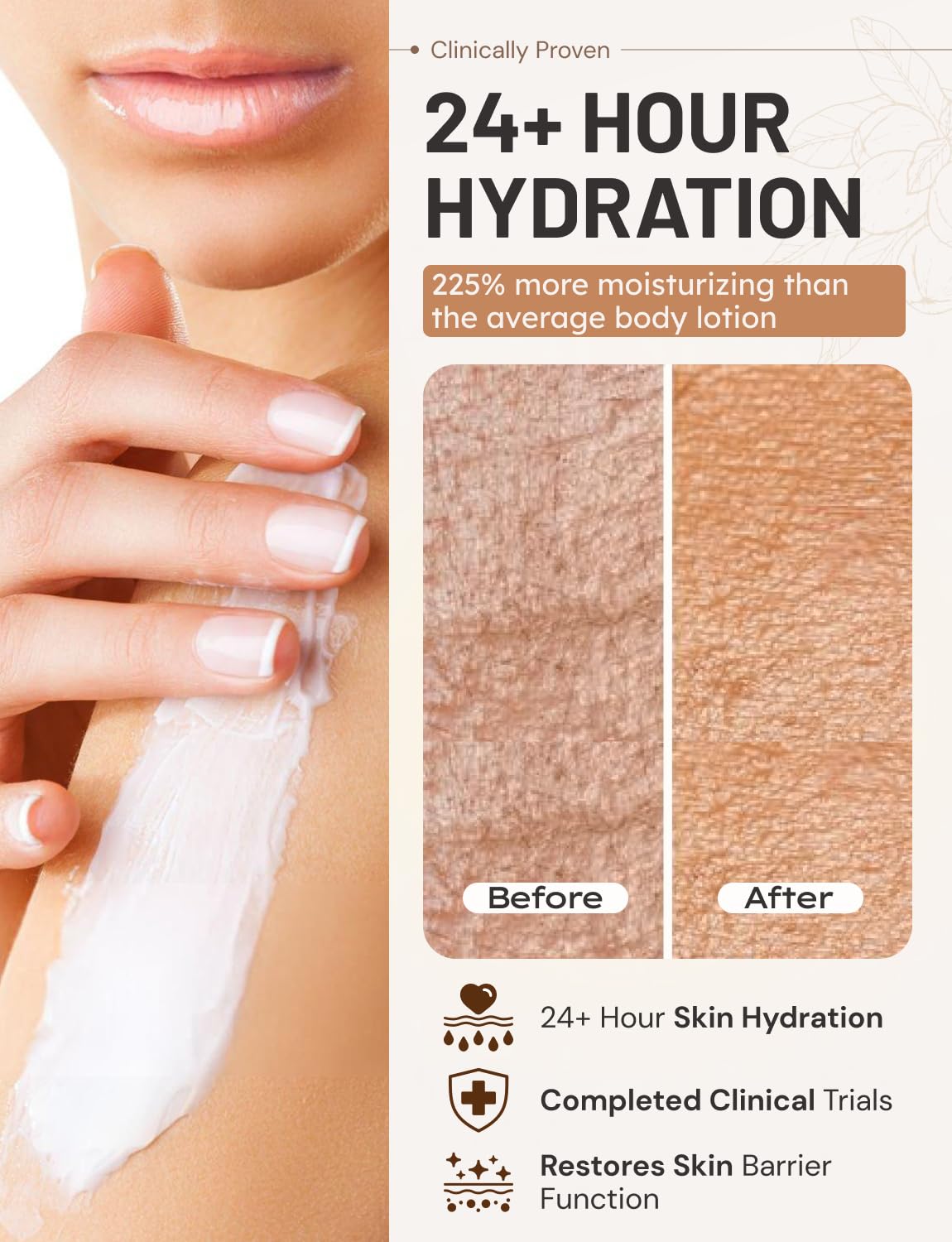 - Intense Hydration for All Skin Types and Tones: Our body moisturizer provides long-lasting relief and nourishment. Non-greasy and fast-absorbing, it leaves your skin hydrated and supple. Infused with shea butter and natural ingredients, it deeply hydrates and relieves dry hands.