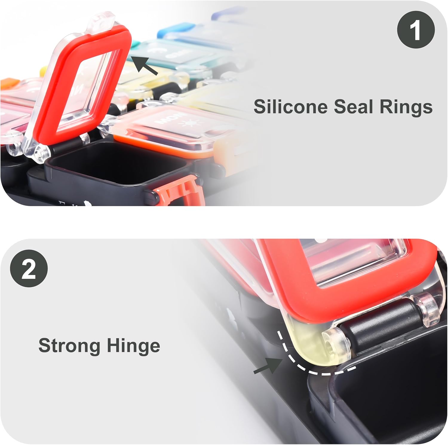 - 【Secure Lid】Say goodbye to pill cases organizers 7 day lids unexpectedly snapping shut, and enjoy our lid's stable design with no annoying bouncing back