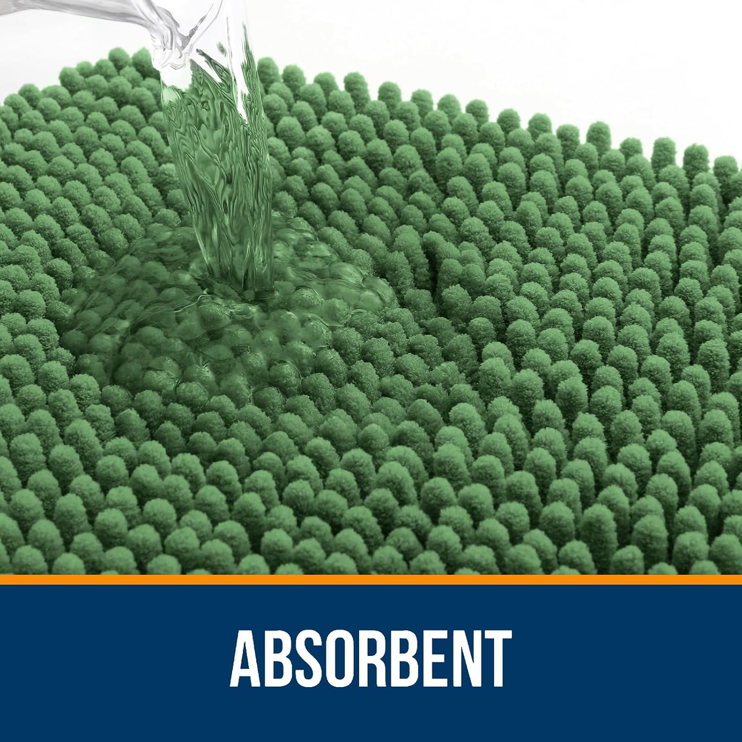 OLANLY Bathroom Rugs 47x20, Extra Soft Absorbent Chenille Bath Rugs, Rubber Backing Quick Dry, Machine Washable Bath Mats for Bathroom Floor, Tub and Shower, Home Decor Accessories, Olive Green