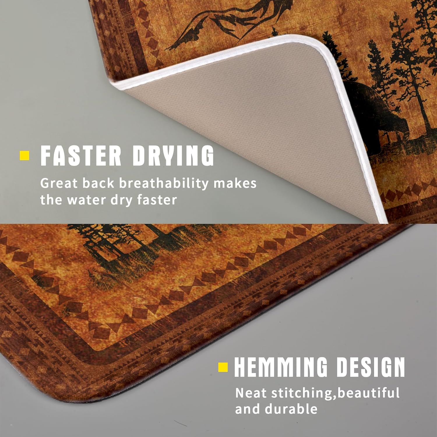 - 【Easy to Storage】This mountain woodland design drying mat with hang rope, soft and foldable, durable, easy to storage it by hanging or folding it up in a drawer or tuck it elsewhere. Perfect for tight spaces like campers, boats and cottages where having a dual purpose item will come in handy.