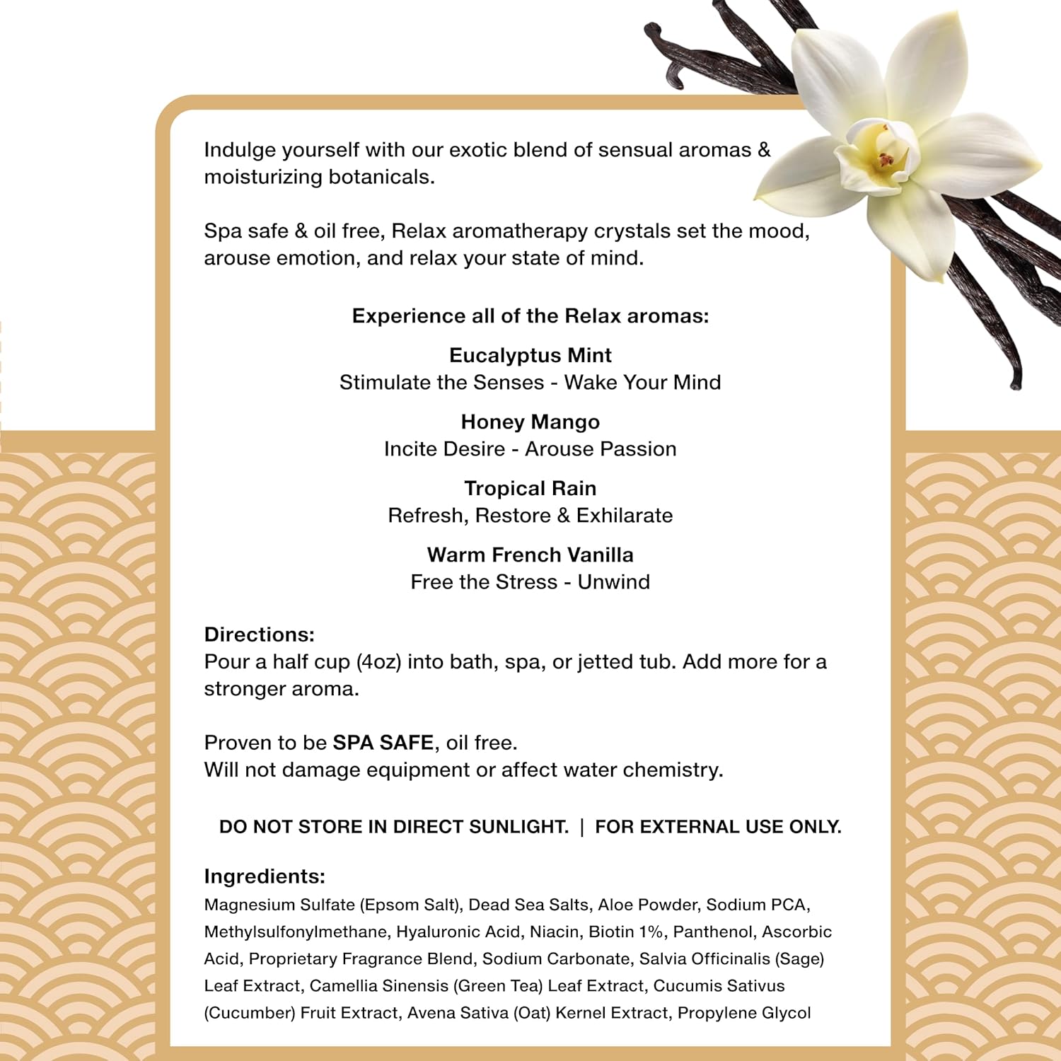Relax Spa & Bath, Epsom & Dead Sea Salts, Aromatherapy Bath Salts for Hot Tub, Bath, or Spa, Infused with Magnesium, Warm French Vanilla Scent