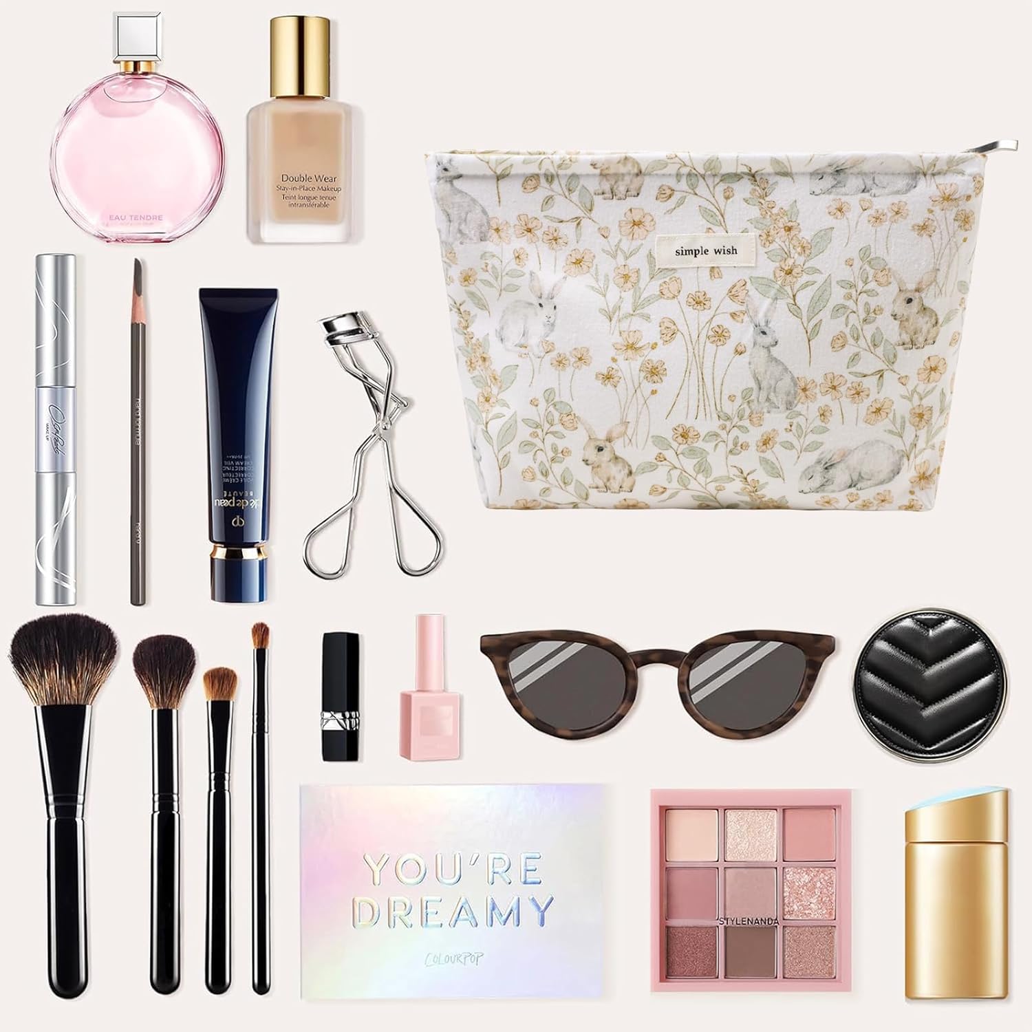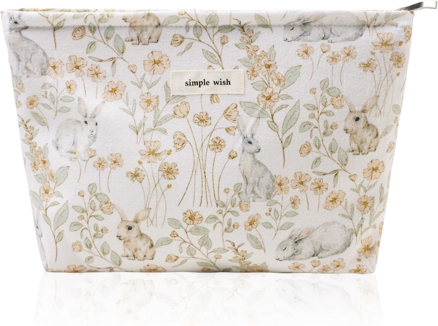 Wudygirl Cute Rabbit Cosmetic Bag - Travel Toiletry Bag & Makeup Pouch for Women & Girls - Large Capacity Canvas Organizer with Zipper Pencil Pouch