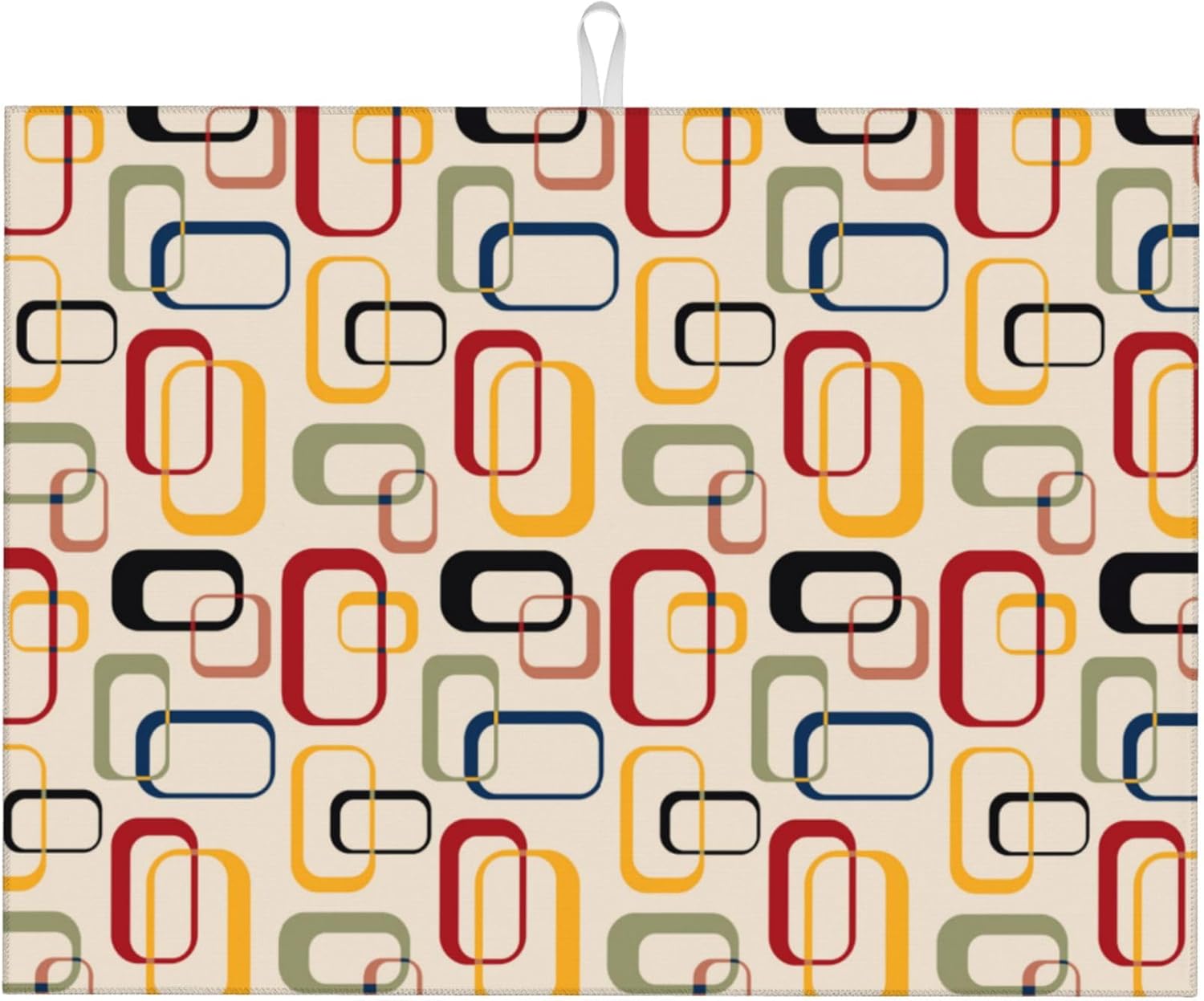 Mid Century Modern Retro Kitchen Drying Mat Vintage Decorative Microfiber Dish Drainer Mat for Kitchen Counter Absorbent Reusable Washable 18x24 Inch