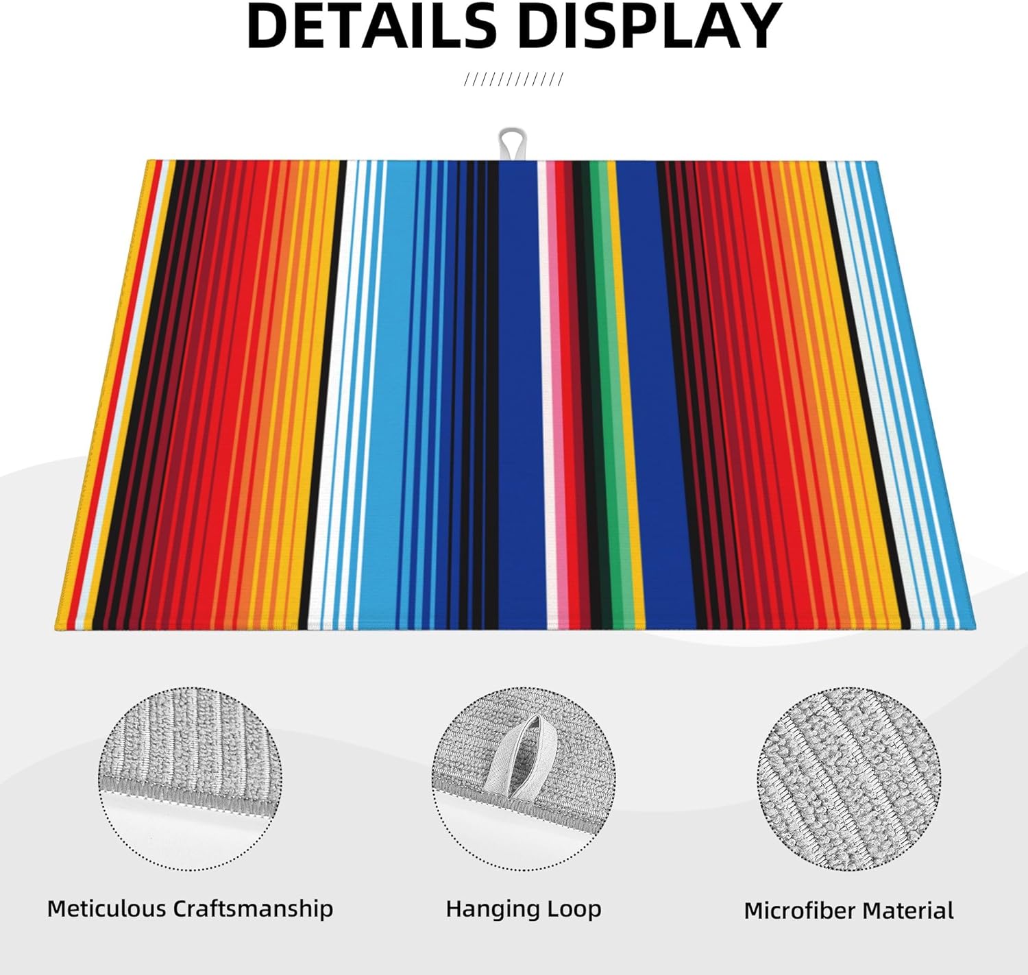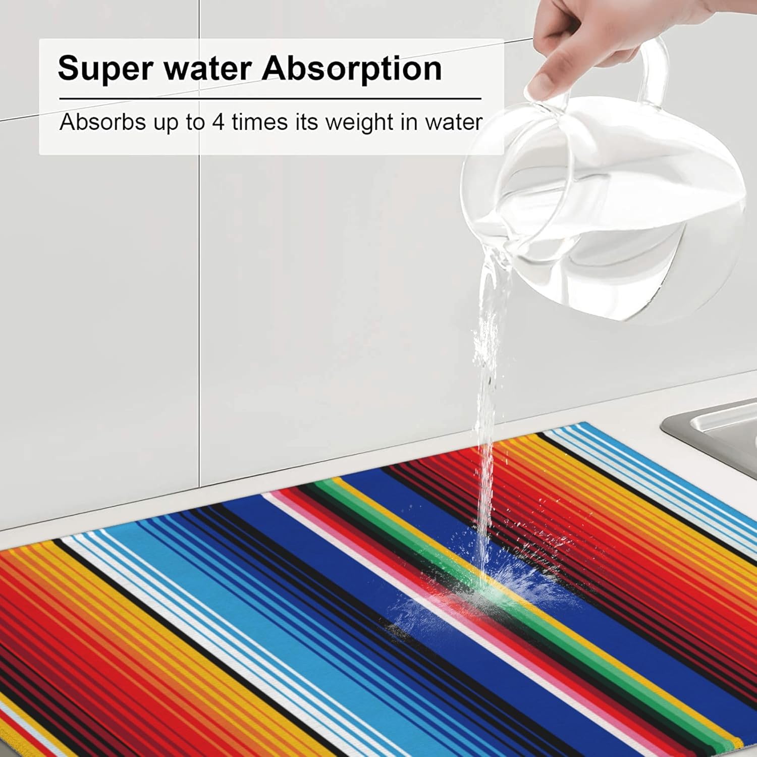 Mexican Dish Drying Mat for Kitchen Counter Rainbow Colorful Stripe Dish Drainer Rack Mats Washable Absorbent Reversible Microfiber Drying Pad Kitchen Accessories 18"x24"