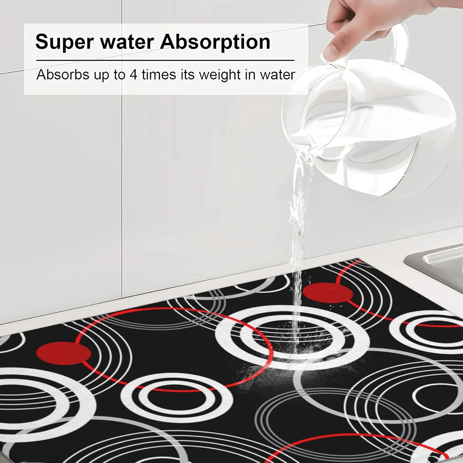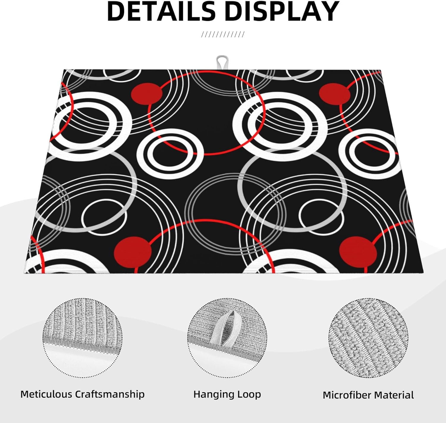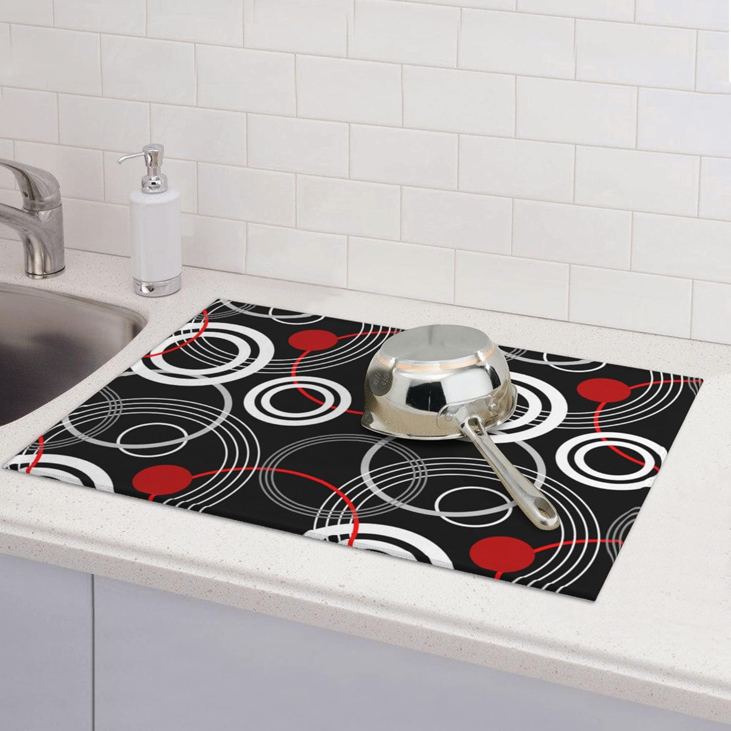 Modern Black Red Retro Dish Drying Mat for Kitchen Counter Absorbent Reversible Drying Pad Kitchen Decor Dish Drainer Rack Mats 18"x24"