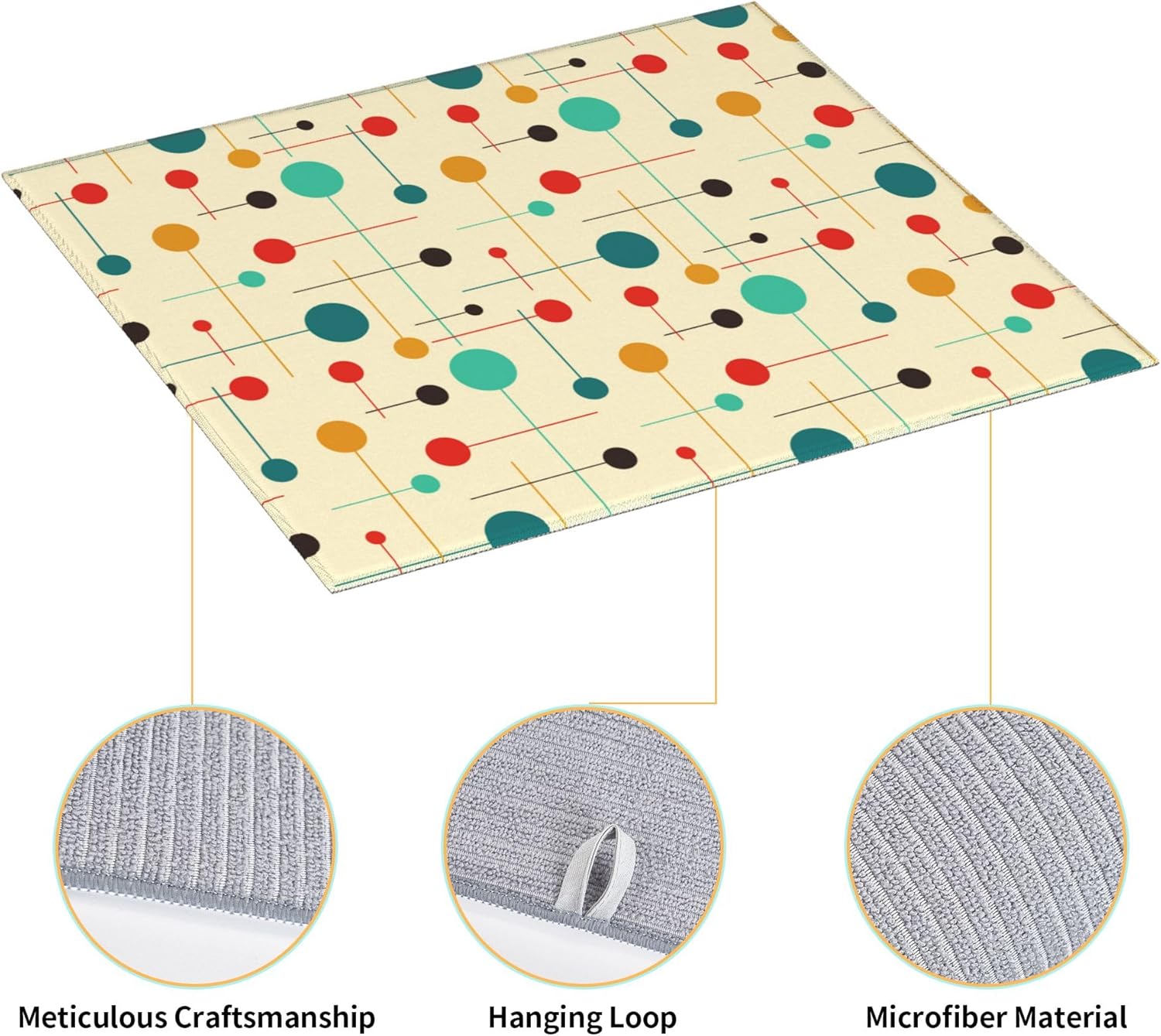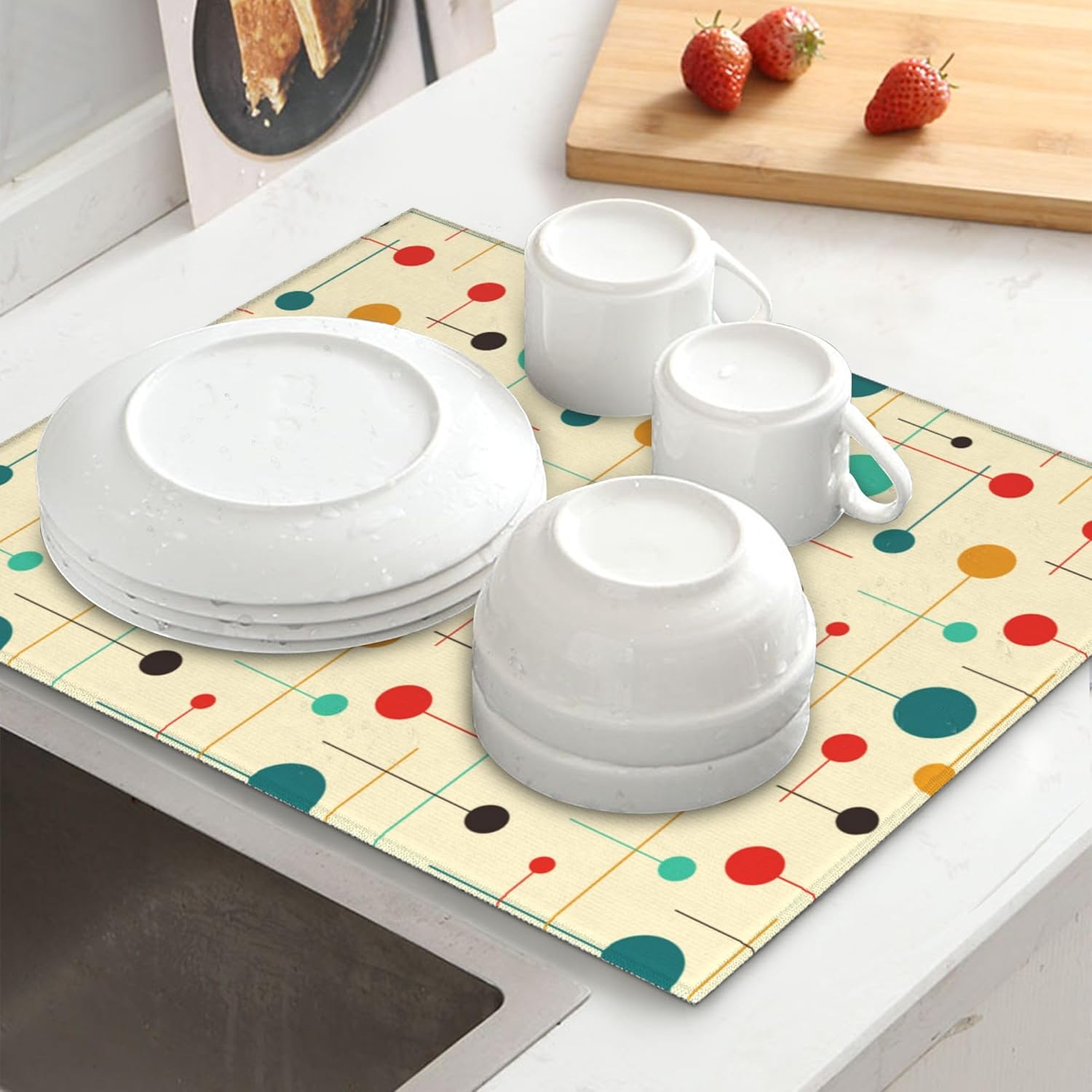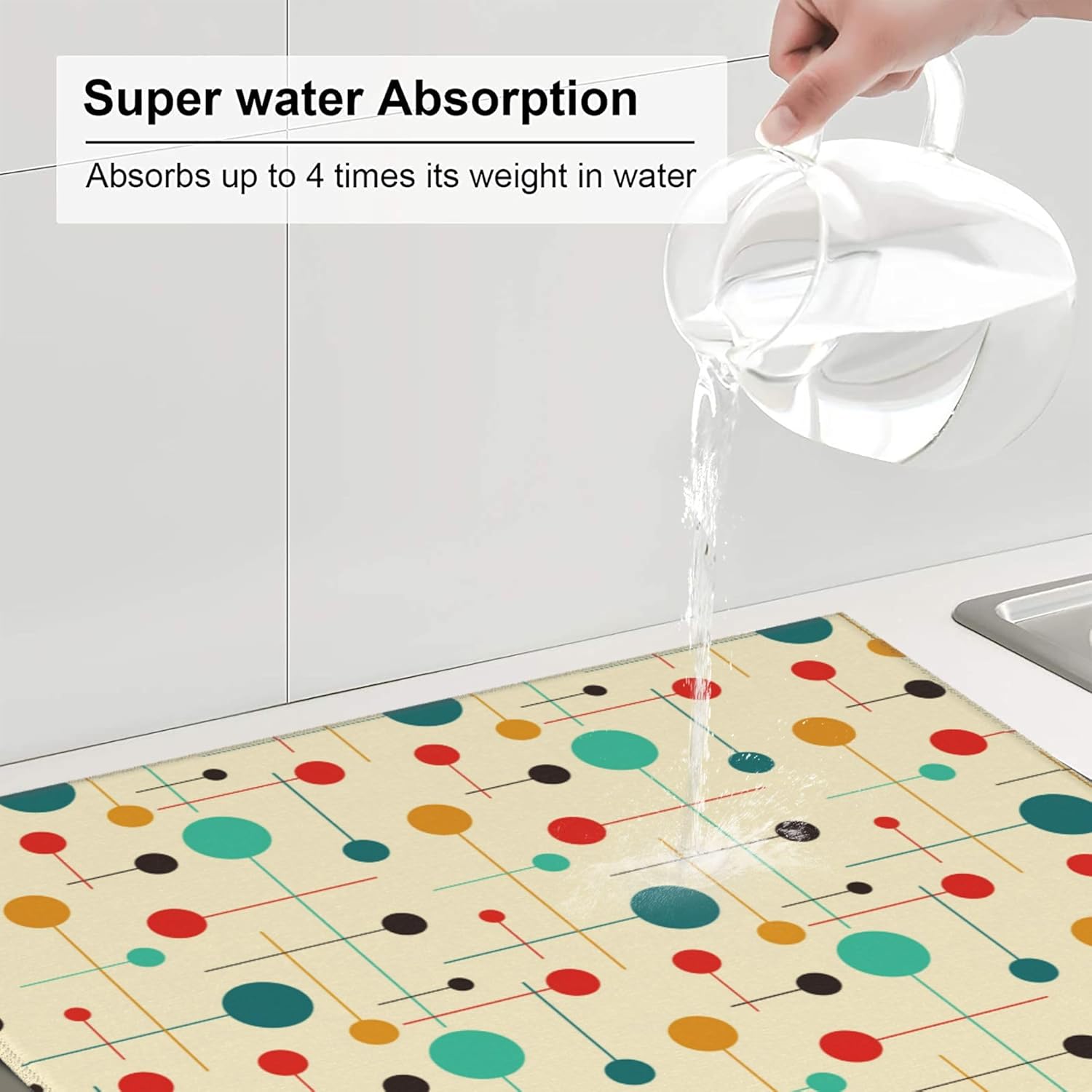 Mid Century Modern Atomic Retro Dish Drying Mat for Kitchen Counter Washable Drying Mat Absorbent Reversible Microfiber Yellow Drying Pad Kitchen Accessories 16"x18"