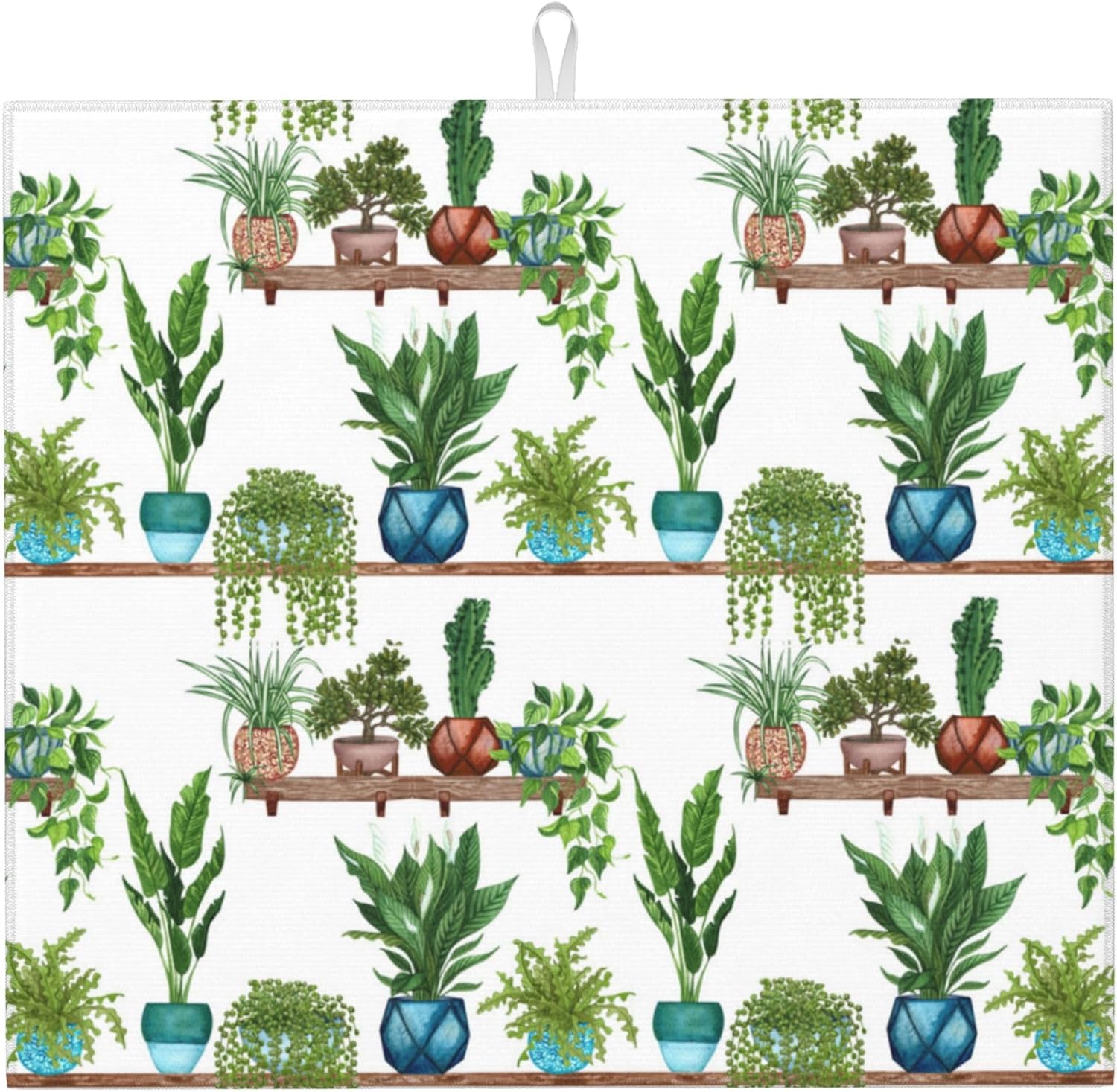 Green Plant Dish Drying Mat for Kitchen Counter Cute Dish Drainer Rack Mats 16"x18" Absorbent Reversible Drying Pad