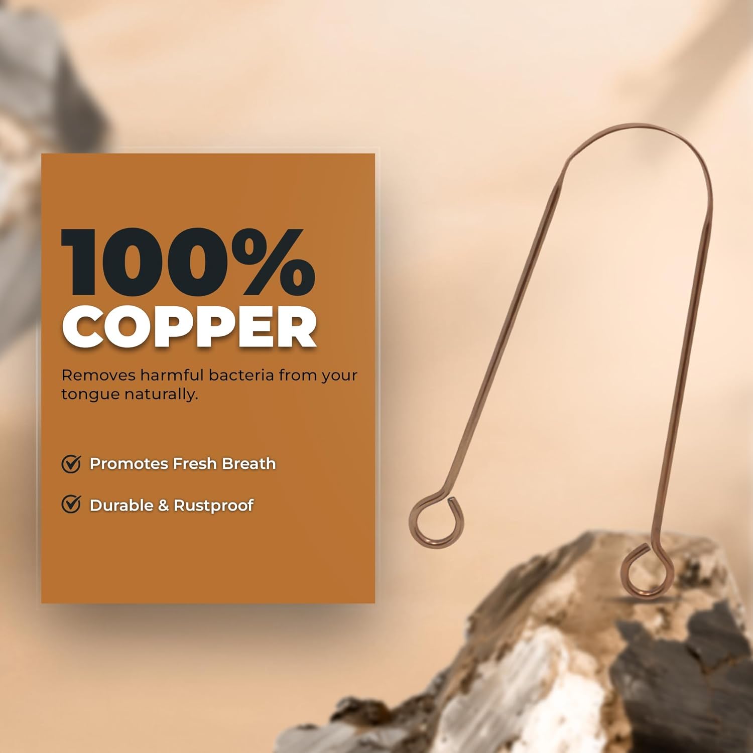 Tongue Scraper for Adults by HOKIN (Copper 2Pcs Oral Care Pack), Copper Tongue Cleaners Reduce Bad Breath, 100% Copper Tough Scrapers Men and Women Hygiene Product