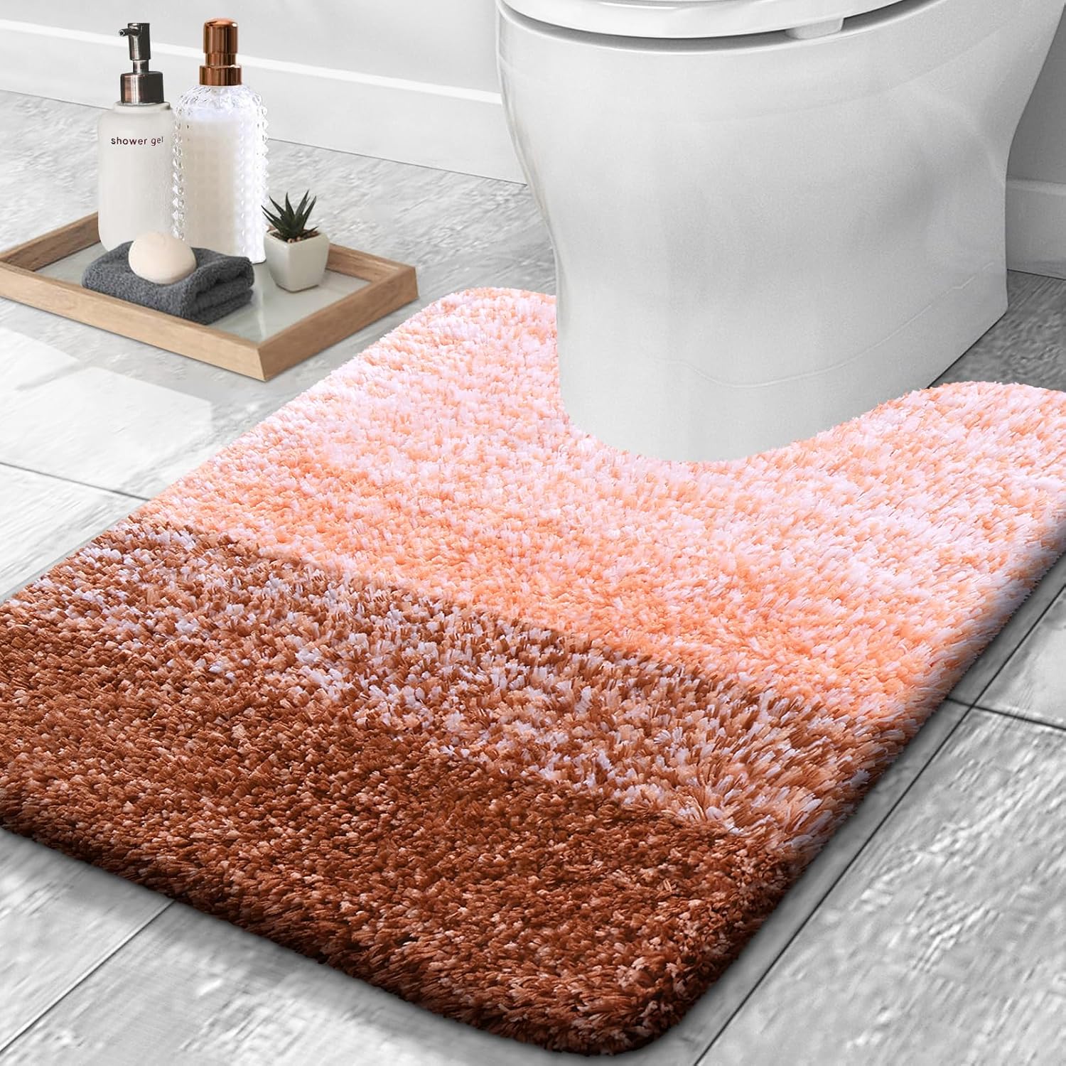 OLANLY Luxury Toilet Rugs U-Shaped 24x20, Extra Soft and Absorbent Microfiber Bathroom Rugs, Non-Slip Plush Shaggy Bath Mat, Machine Wash Dry, Contour Bathroom Mats for Toilet Base, Orange