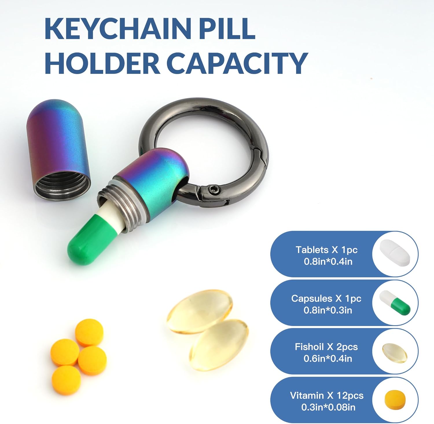 TISKY Small Keychain Pill Holder Titanium,Waterproof Tiny Pill Container with Keyring,Mini Portable Pill Case for Travel,Pill Organizer for Purse Pocket(Multicolor)