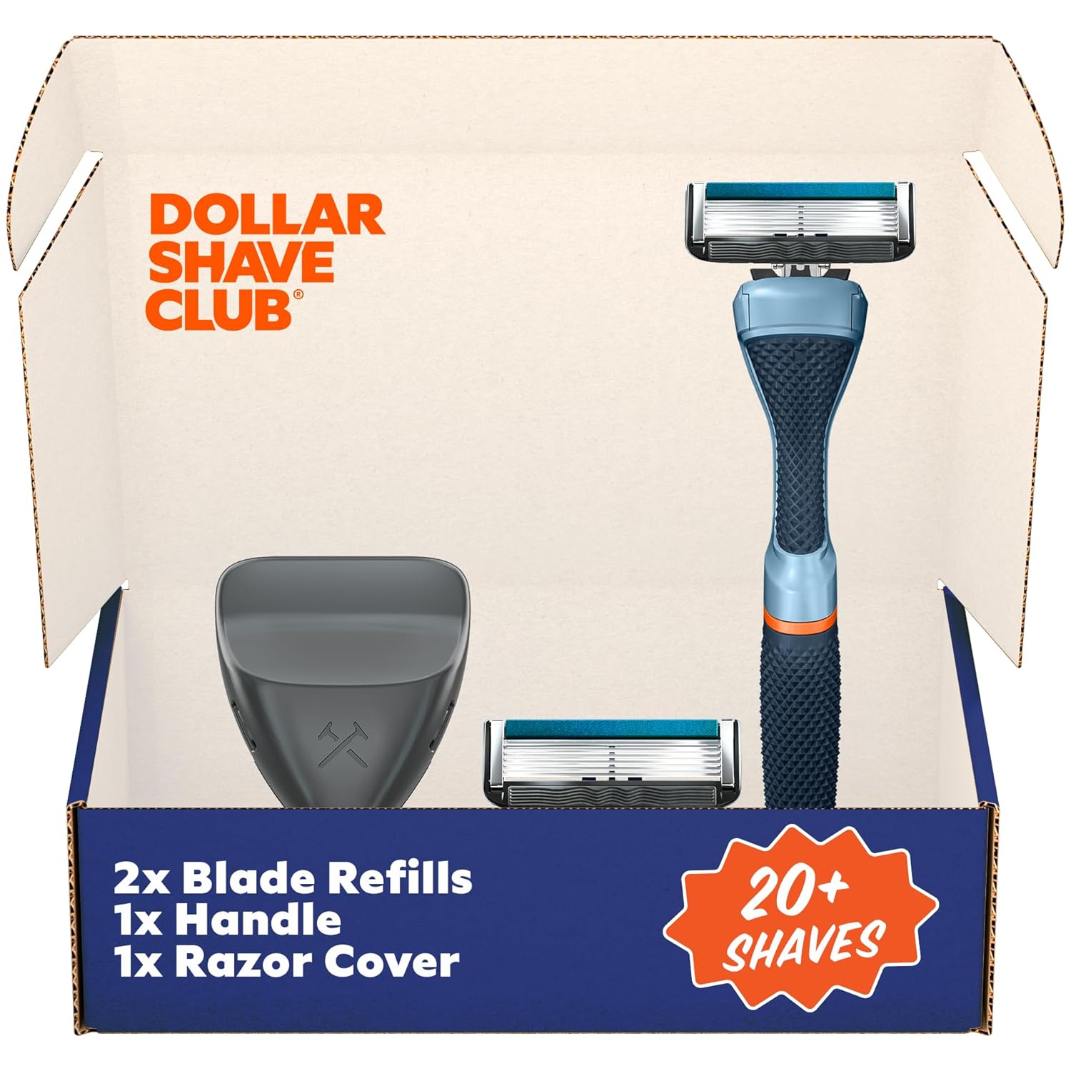 Dollar Shave Club | The Guest Pass Shave Set | 2 Extra Close Refill Cartridges, 1 Handle (Blue), 1 Razor Cover, Razors for Men
