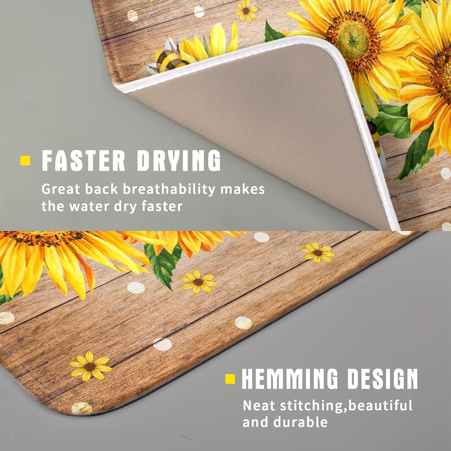 - 【Protect Tableware】Place your dishes on it or under dish racks, the yellow sunflower dish mat prevents bowls, glassware, and more tablewares from being scratched or worn, can be used as dish drying mat, sink mat, dishes drainer mats to keep the countertop dry and tidy.
