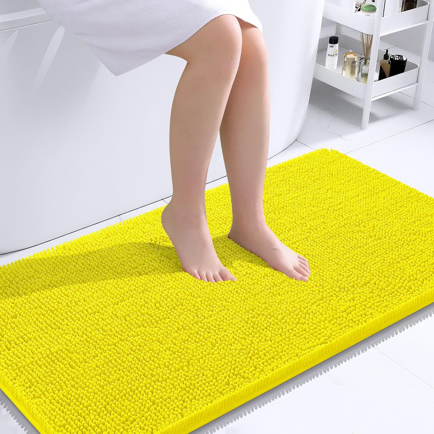 OLANLY Bathroom Rugs 44x24, Extra Soft Absorbent Chenille Bath Rugs, Rubber Backing Quick Dry, Machine Washable Bath Mats for Bathroom Floor, Tub and Shower, Home Decor Accessories, Lemon Yellow
