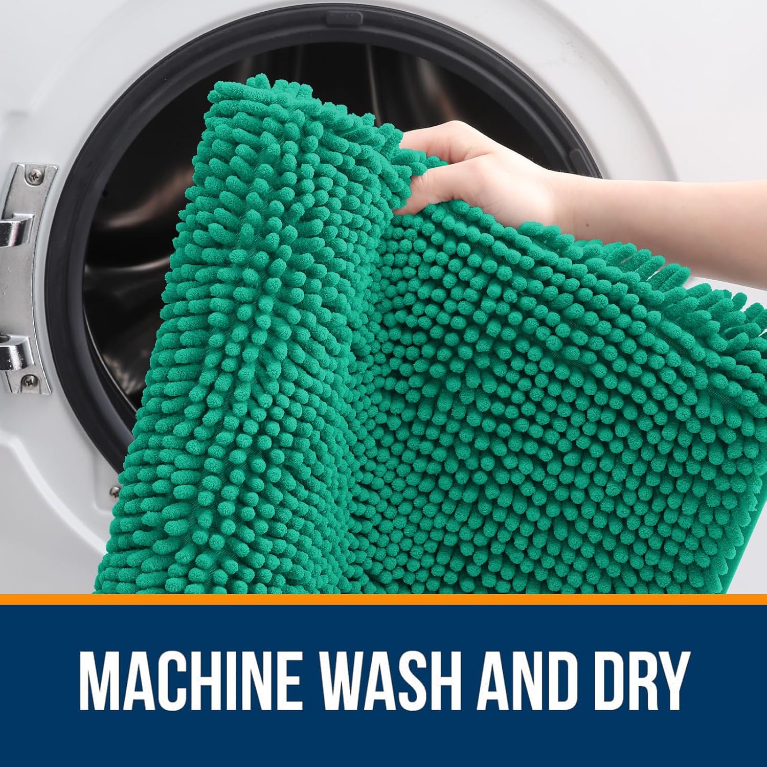 OLANLY Bathroom Rugs 36x24, Extra Soft Absorbent Chenille Bath Rugs, Rubber Backing Quick Dry, Machine Washable Bath Mats for Bathroom Floor, Tub and Shower, Home Decor Accessories, Emerald