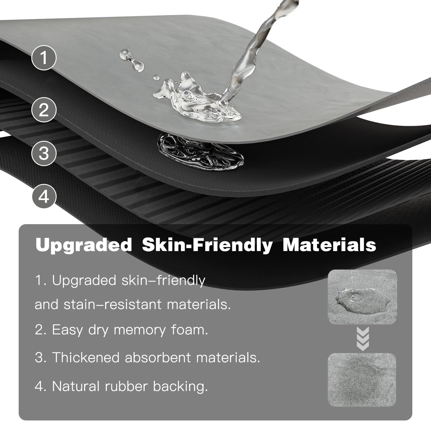- Indulge in Luxury and Comfort: Our bathroom mat features a sleek, modern design that absorbs water efficiently, even though it's not fluffy. Its thin profile fits under doors easily, making it an ideal choice for small bathrooms with limited space. Step onto our soft, cozy bath mat after your shower and feel the comfort embrace your feet