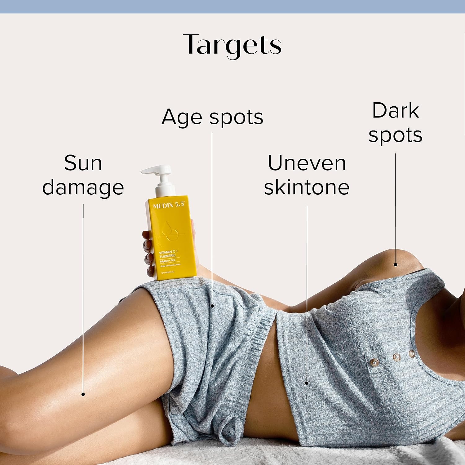 MEDIX Fragrance Free Firming Retinol Body Lotion + Brightening Vitamin C Cream 2pc Skin Care Set | Crepey Skin Care Treatment | Anti Aging Body Cream & Face Moisturizer For Crepe Skin & Dark Spots