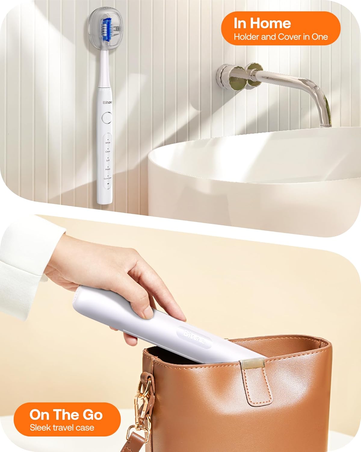 - Daily Use-Friendly 2-in-1 Toothbrush Holder and Cover: This electric toothbrush features a versatile holder that not only keeps your toothbrush clean and hygienic but also doubles as a protective cover, shielding it from dust and water between uses