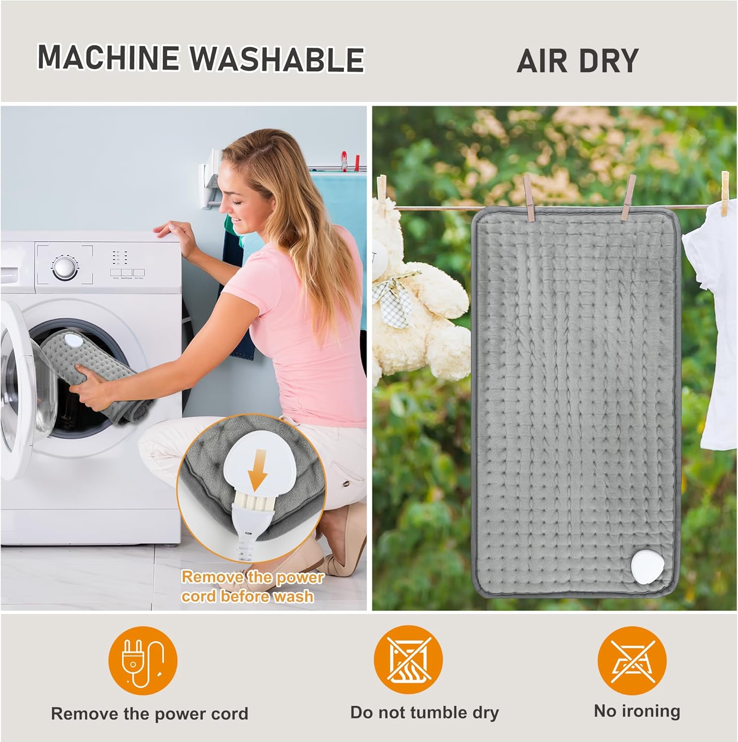 - Soft and Comfortable Material: Made from ultra-soft, plush fabric, this heating pad ensures a cozy and soothing experience. The gentle material is comfortable against your skin, and the pad is machine washable, making it easy to keep clean and fresh.