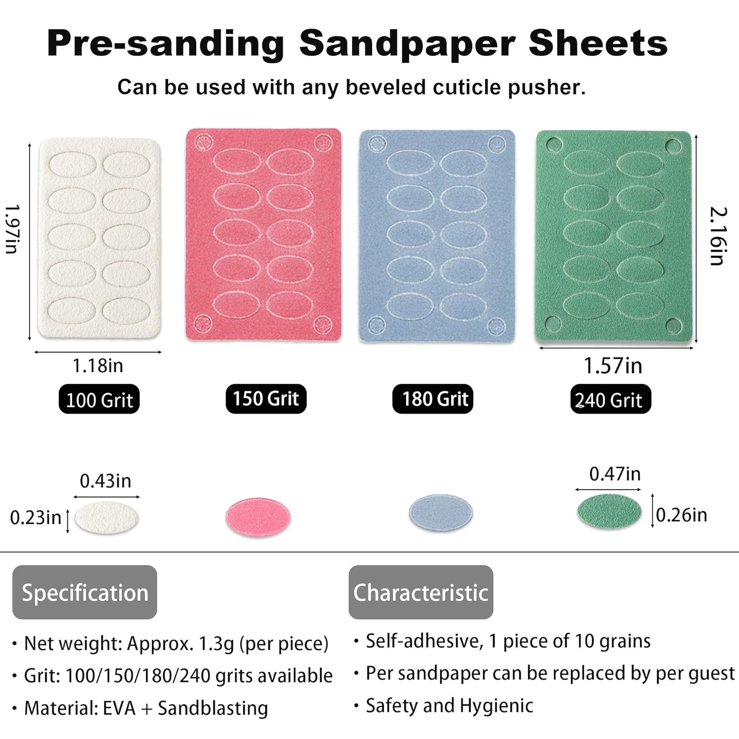 Pre-treatment Cuticle Pusher, Russian Prep Nail Pushers, Dual Ended Cuticle Remover with 100/180 Grit Sandpaper Sheets, Nail Care for Manicure Pedicure Nail Art