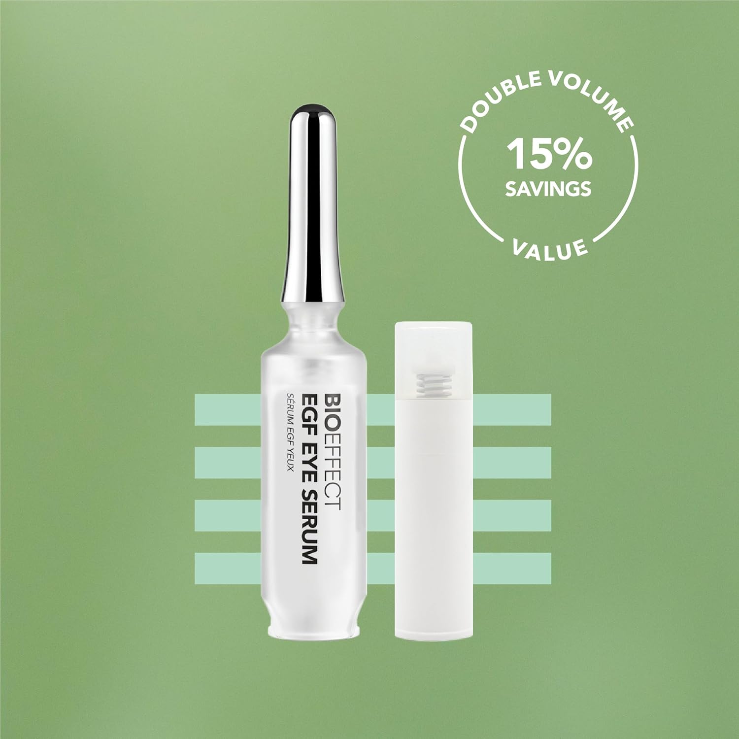 - FIRMING EYE SERUM & DE-PUFFER: Best-selling skin care for the delicate eye area, visibly lifts and tightens with a high concentration of Barley growth factor. Targets puffy eyes, under-eye bags, crepey skin and crow’s feet with a cooling, stainless steel rollerball applicator. This set includes an eco-friendly, extra cartridge (6ml) of the potent serum to use as a refill inside the original container.