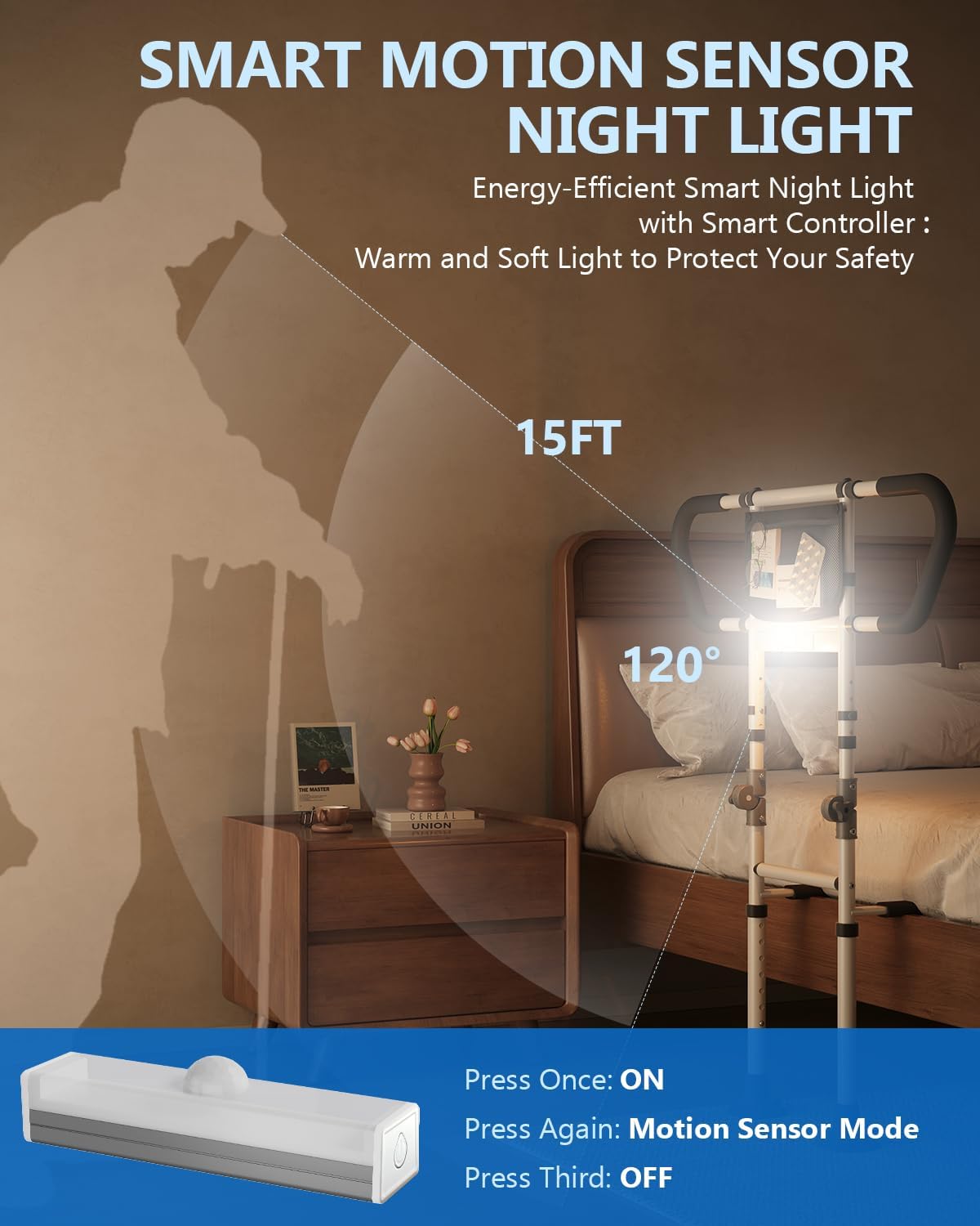 - 400 Lbs Heavy-Duty Stability: Reinforced steel frame with transverse support bars holds up to 400 lbs, ensuring safety for elderly adults. Non-slip suction cups provide secure placement on king, queen, full, and twin beds.