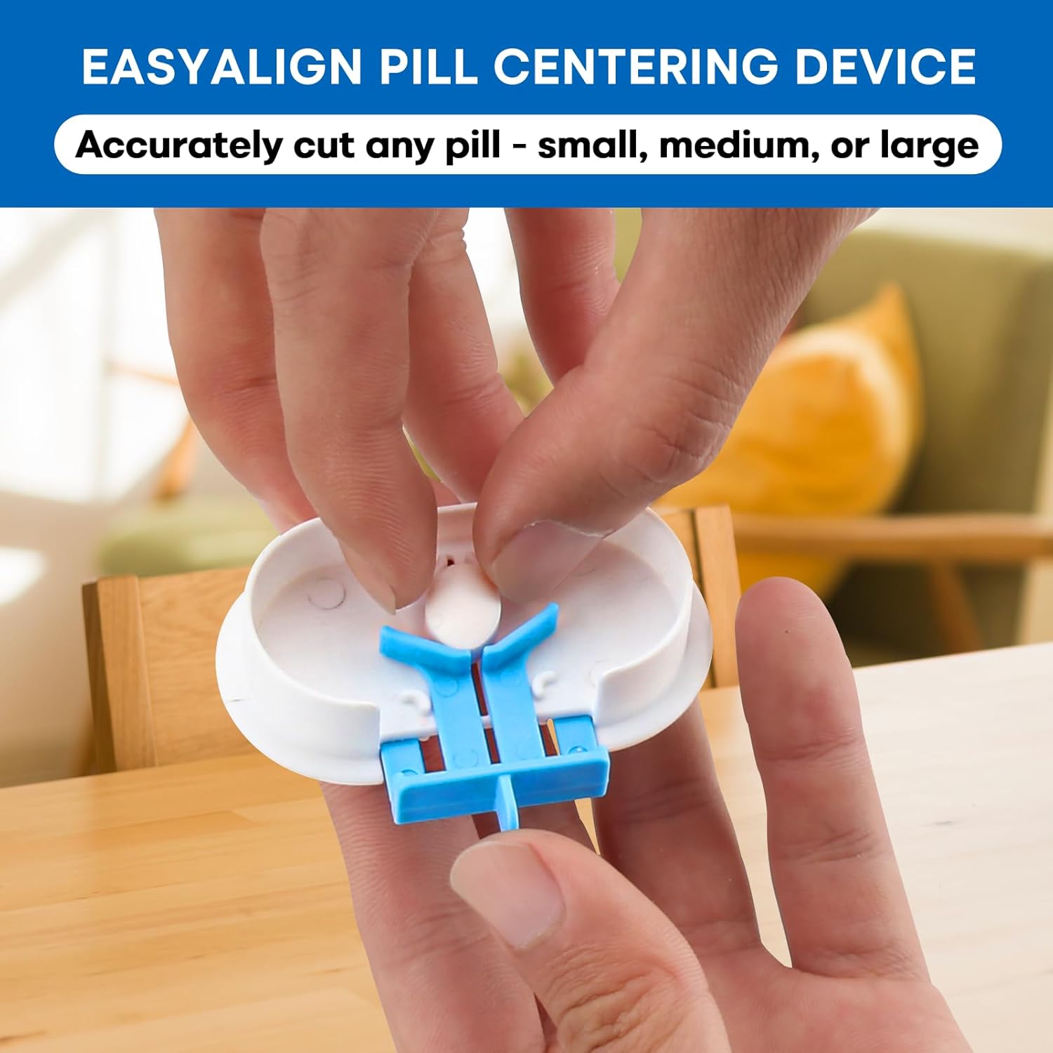 - EASYALIGN PILL CENTERING DEVICE: Designed to accurately cut pills of all sizes—small, medium, or large—with ease. The innovative centering device of the pill cutter splitter ensures precise alignment, reducing uneven splits and wasted pills. Whether it's hard or soft tablets, this pill splitter for small pills or pill divider makes splitting simple for anyone. Compared to other pill cutters for small or large pills, professional and non-professional users can use this device hassle-free.