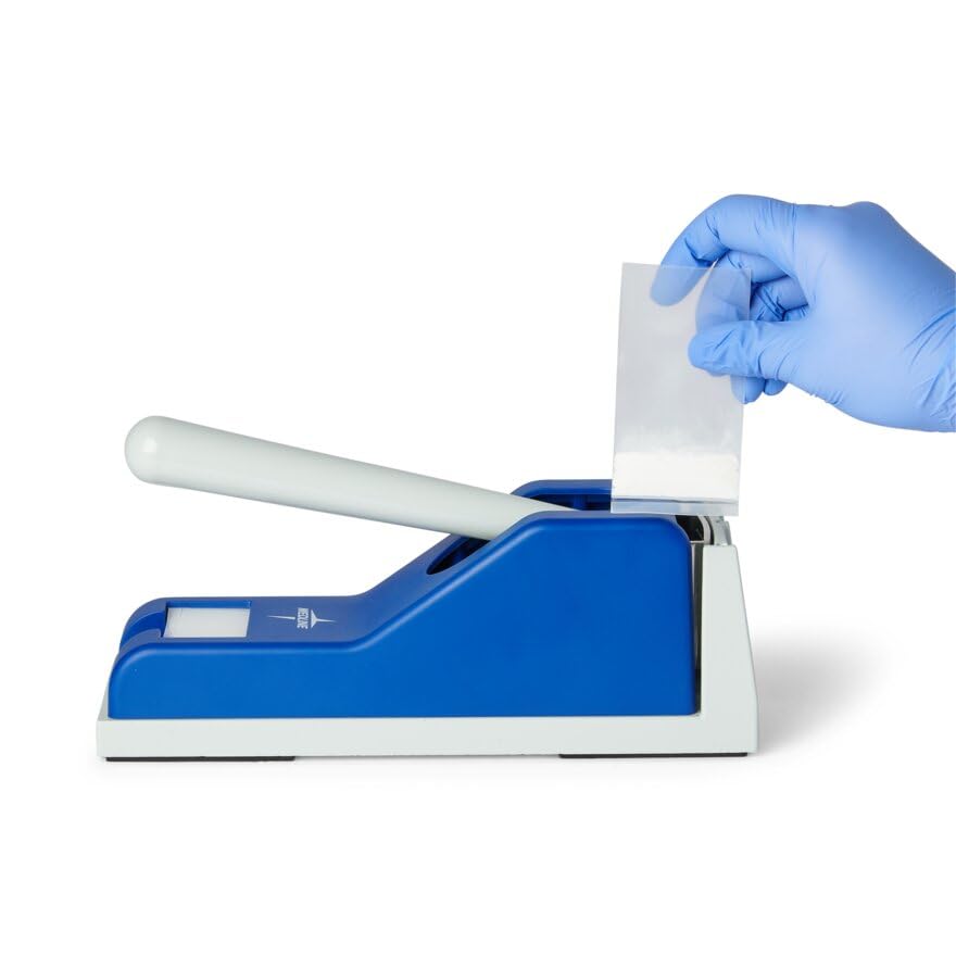 Medline Pill Crusher, 50 Pill Pouches Included, Ergonomic Design, Easily Crushes Medication Without Strain, Hygienic Cross-Contamination Protective Pouches, Blue, 1 EA
