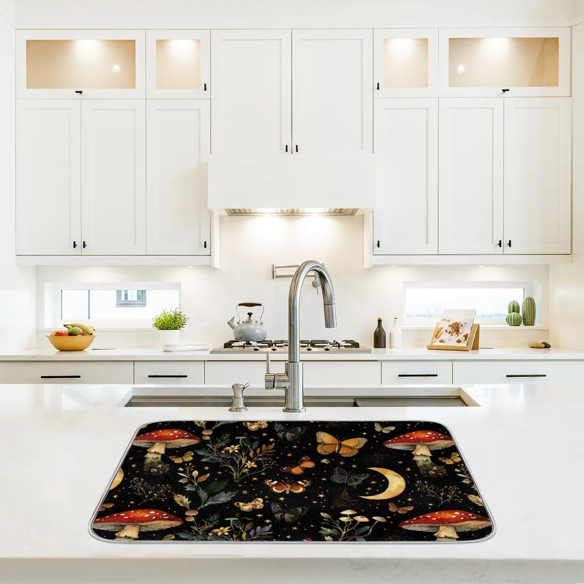 Hexteria Mushrooms and Butterflies Dish Drying Mat for Kitchen Counter Microfiber Absorbent Dish Draining Reusable Washable Foldable Extra Large 18"x24"