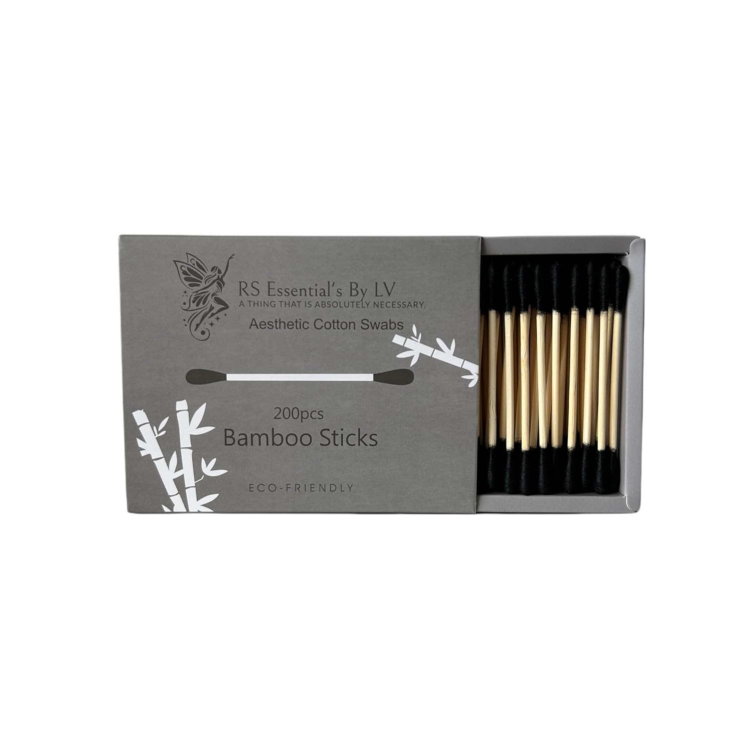 RS ESSENTIAL'S BY LV: Aesthetic Cotton Swabs Sticks Ear Swabs Bamboo swabs 200 Count Cotton Buds In 5 Colorful Colors (Black)