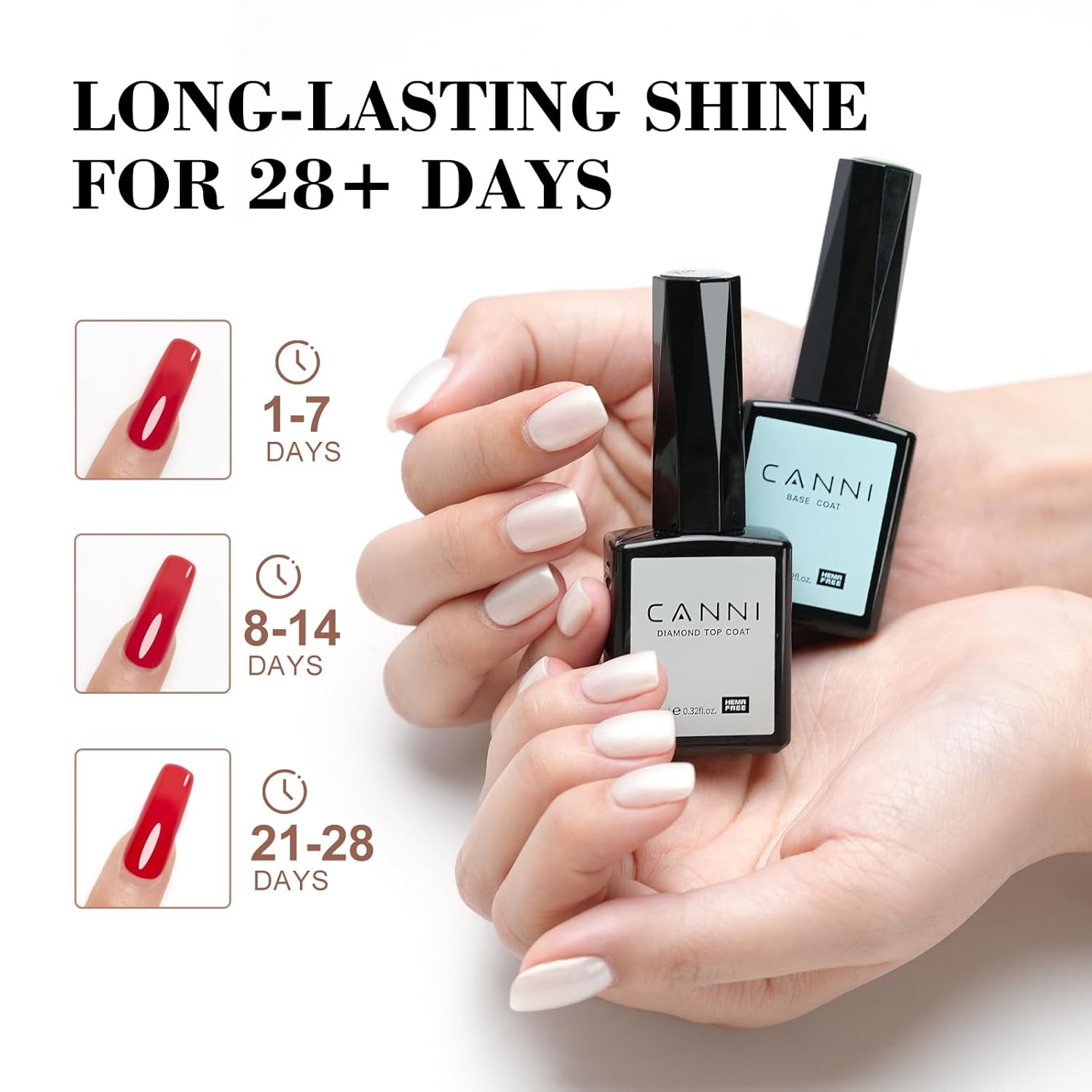 - Long-Lasting & Professional Quality: CANNI 2Pcs Base and Top Coat Set Provides salon-quality results at home, keeping nails shiny for up to 4 weeks
