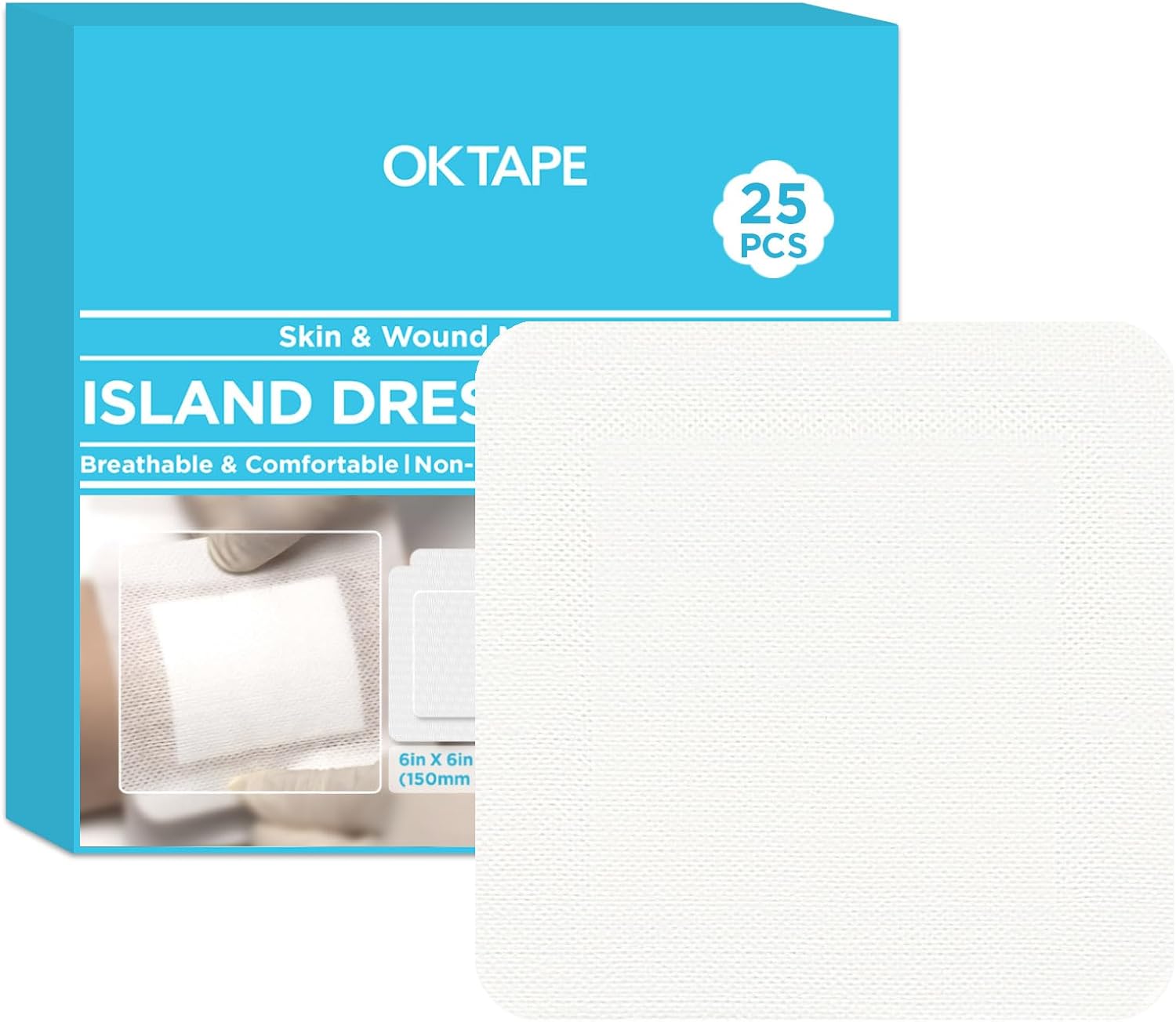 OK TAPE Bordered Gauze Island Dressing 6"x6",25 Count Wrapped Gauze Pads,Non-Woven Sterile Wound Dressing with Highly Absorbent Pad,Soft and Breathable Bandages for Wounds, First Aid