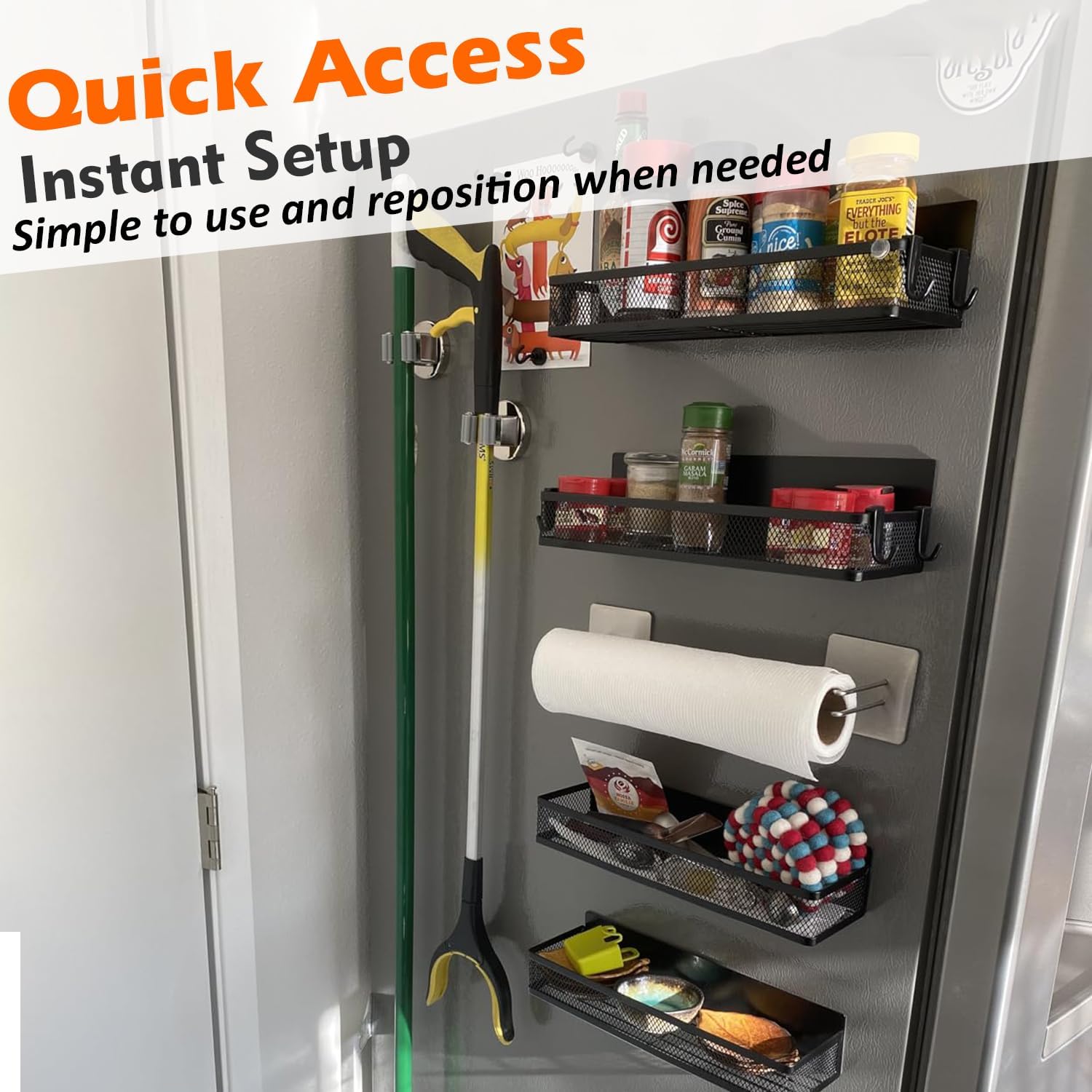 - Versatile Universal Mop Holder: The package is beautifully crafted, with complete products, and well-functioning features more messes between the wall and fridge or having them fall over and make them hard to reach. Nice and organized