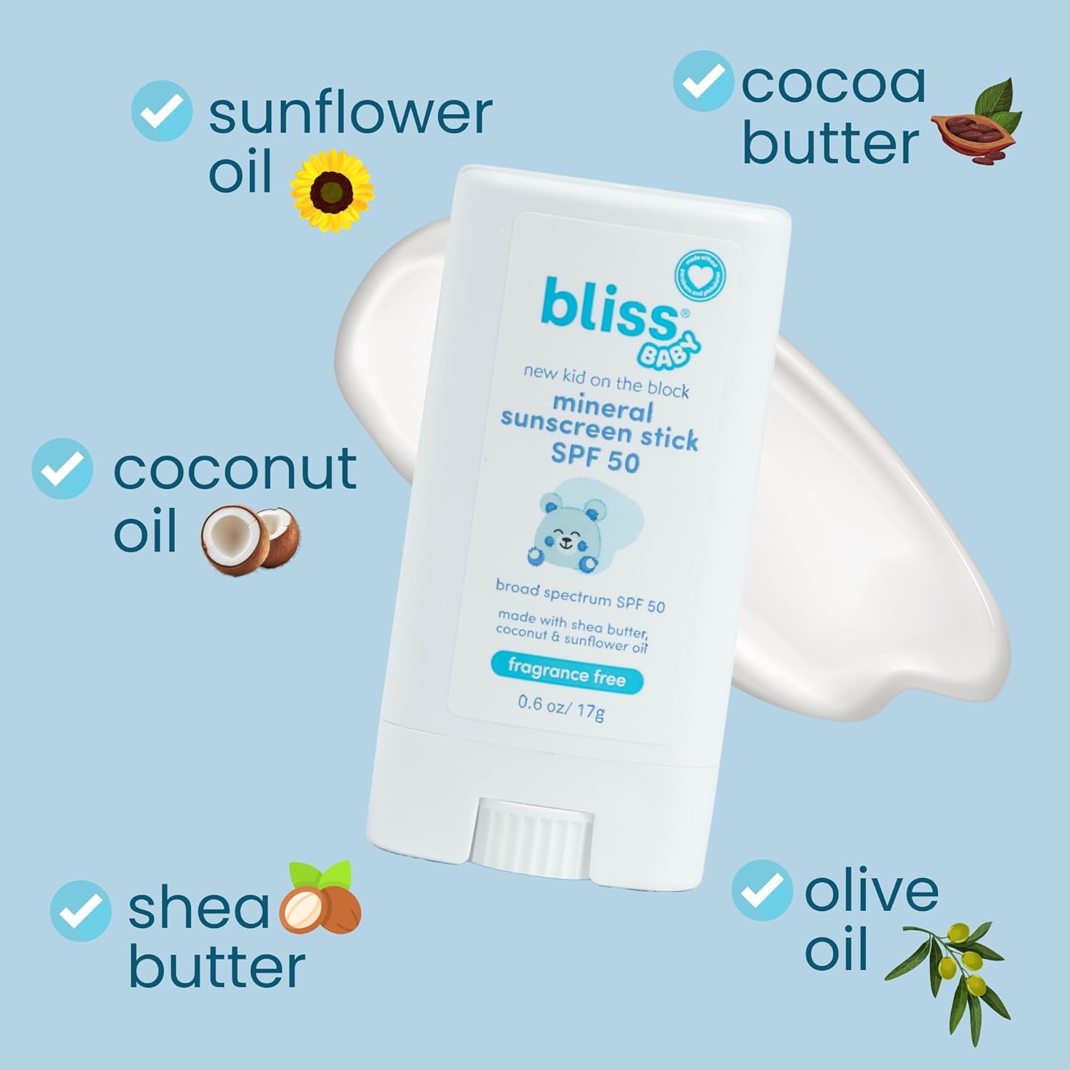 - BLISSFUL PROTECTION: Bliss baby mineral sunscreen provides gentle, safe & natural mineral zinc oxide based SPF 50 sun protection. Face & body protection for babies, kids & adults with sensitive skin. Broad spectrum UVA & UVB sunscreen, great for daily use. Natural non-nano zinc oxide offers gentle defense against the sun’s rays on sensitive skin.