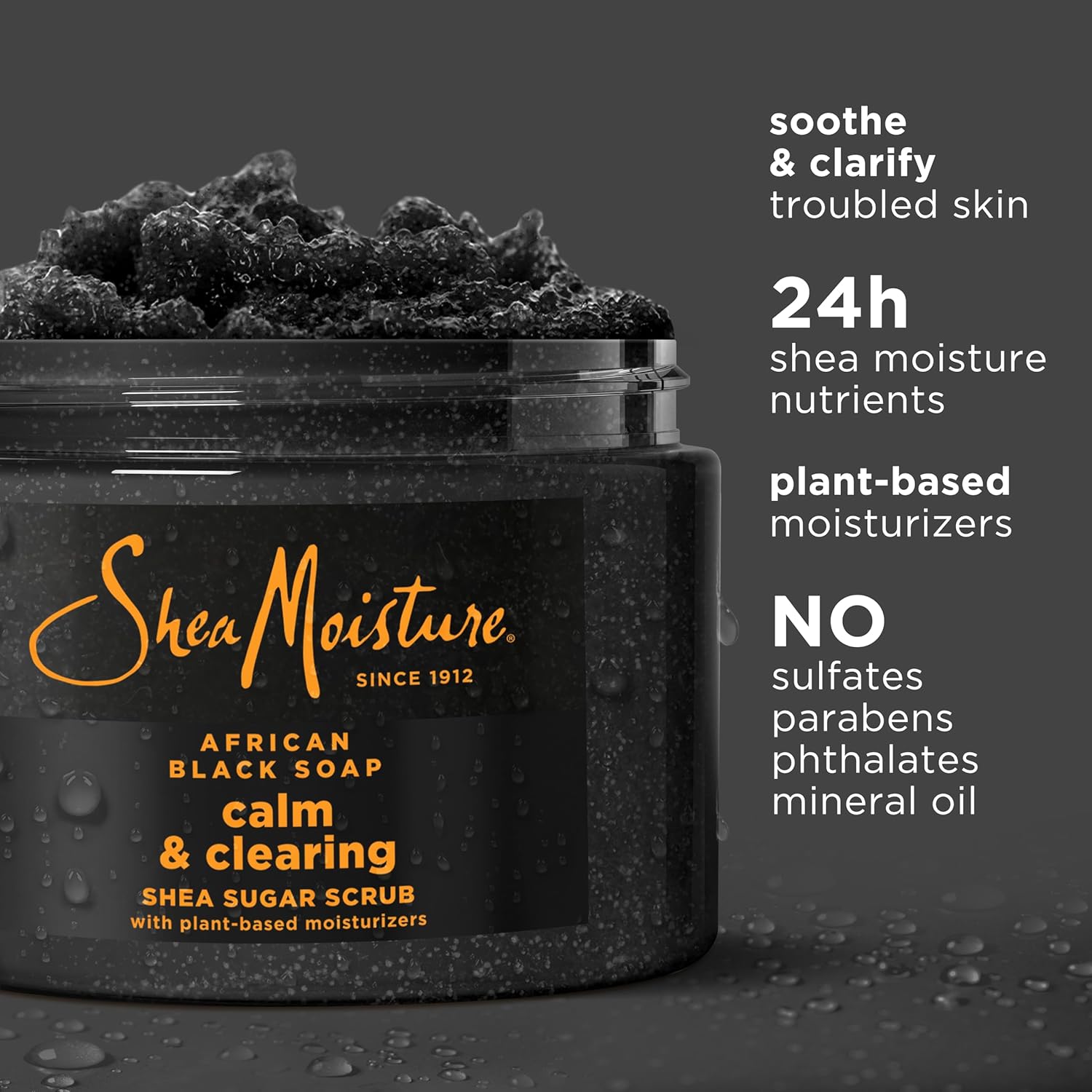 SheaMoisture Sugar Body Scrub African Black Soap for healthy, glowing skin African black soap with 24h shea moisture nutrients 12 oz