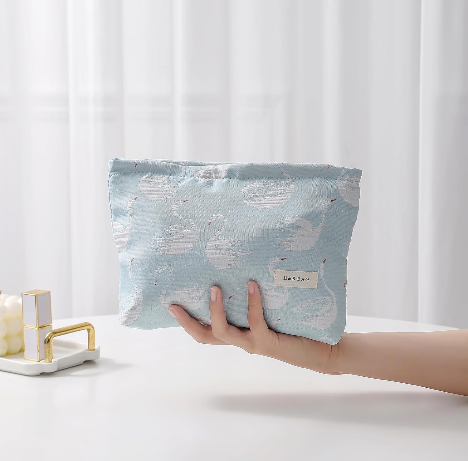 - Floral Pouch Pattern Small Cosmetic Bag for Purse: The large pouches for purse feature white swan print, adding a touch of style to your makeup routine. Make you feel happy everyday.