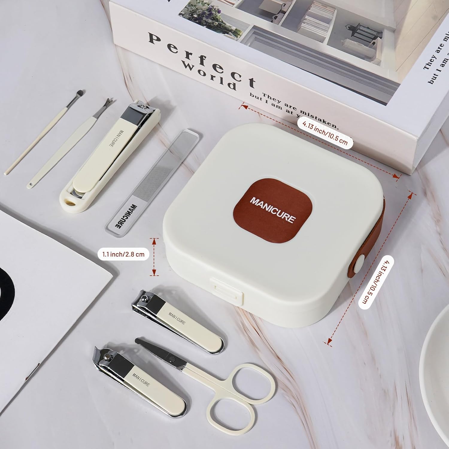 Nail Clippers and Beauty Tool Portable Set, Cuticle Nail Care Tools, 7pcs Stainless Steel Grooming Kit, Suitable for Home, Workplace, Outdoor Travel, Gift Giving, Salon., Beige+Brown