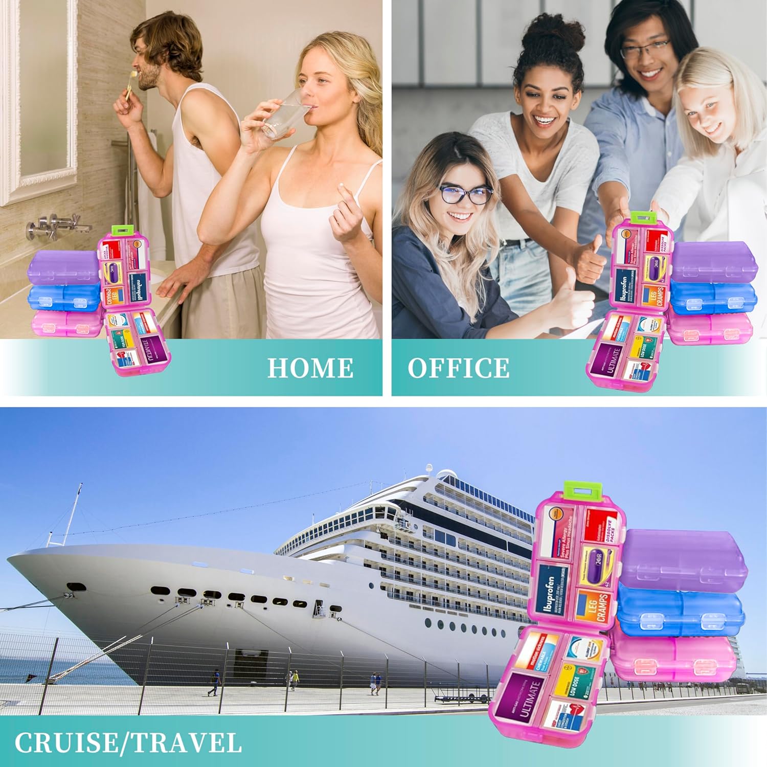 Large Pill Organizer with Medicine Labels, Travel Daily Pill Container, Mini Medication Organizer, 7-Day Pill Case, Set of 3 (Blue+Pink+Purple)