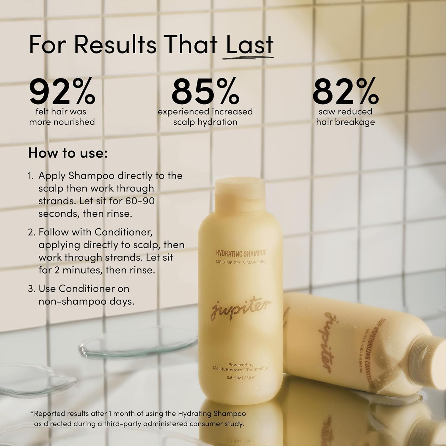 Jupiter Hydrating Shampoo and Conditioner Set – Moisturizing, Nourishing, and Strengthening Hair Care – Daily Scalp & Hair Hydration – Color-Safe, Sulfate-Free, Paraben-Free, 9.5 fl. oz. each