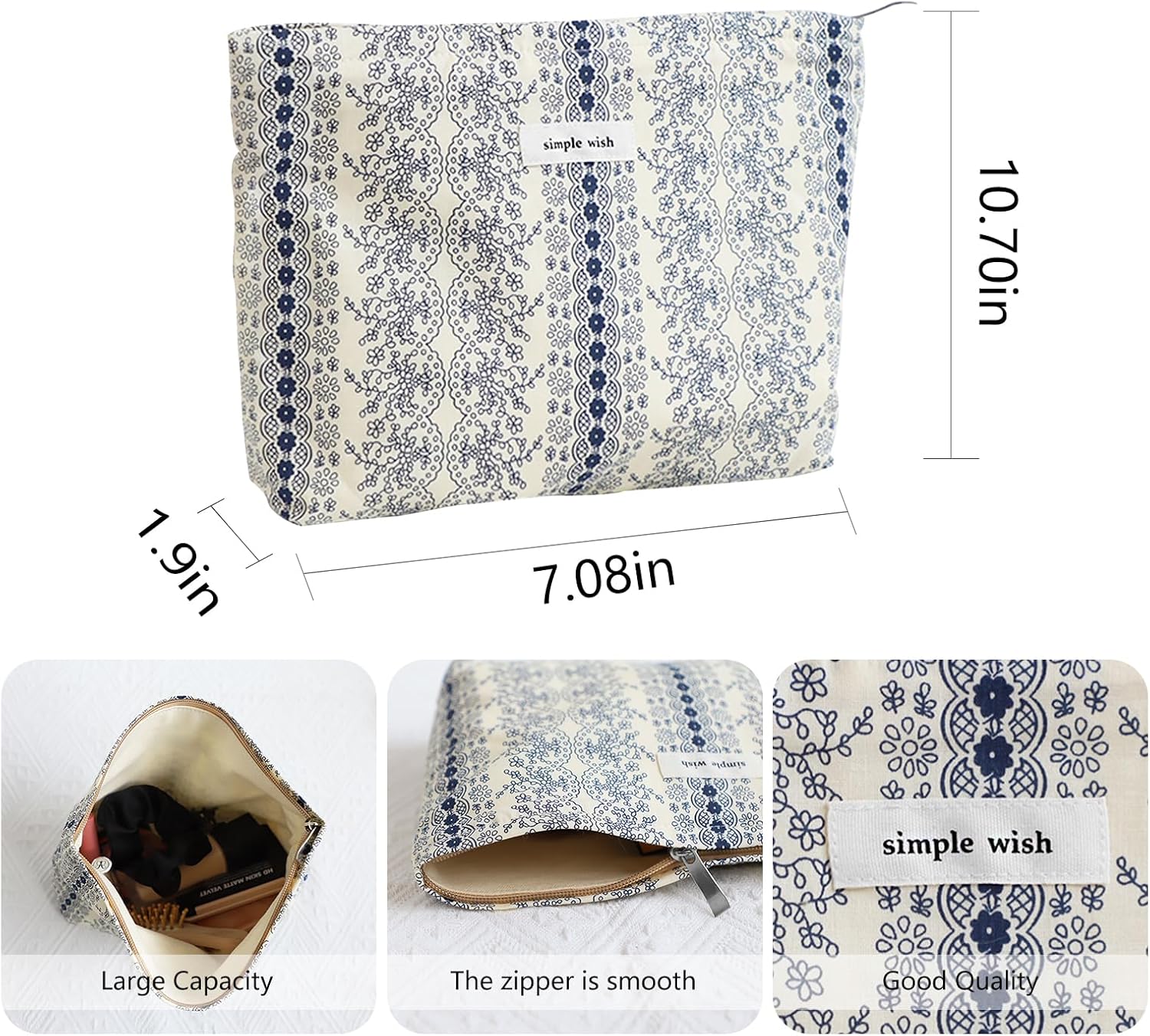- Perfect Size: Our makeup pouch offers plenty of space to store all your makeup essentials, ensuring you have everything you need. Reliable zipper closure keeps your cosmetics safe and prevents any leaks or accidents, giving you peace of mind during travel or daily use.Size:10.75x7.5 Inches