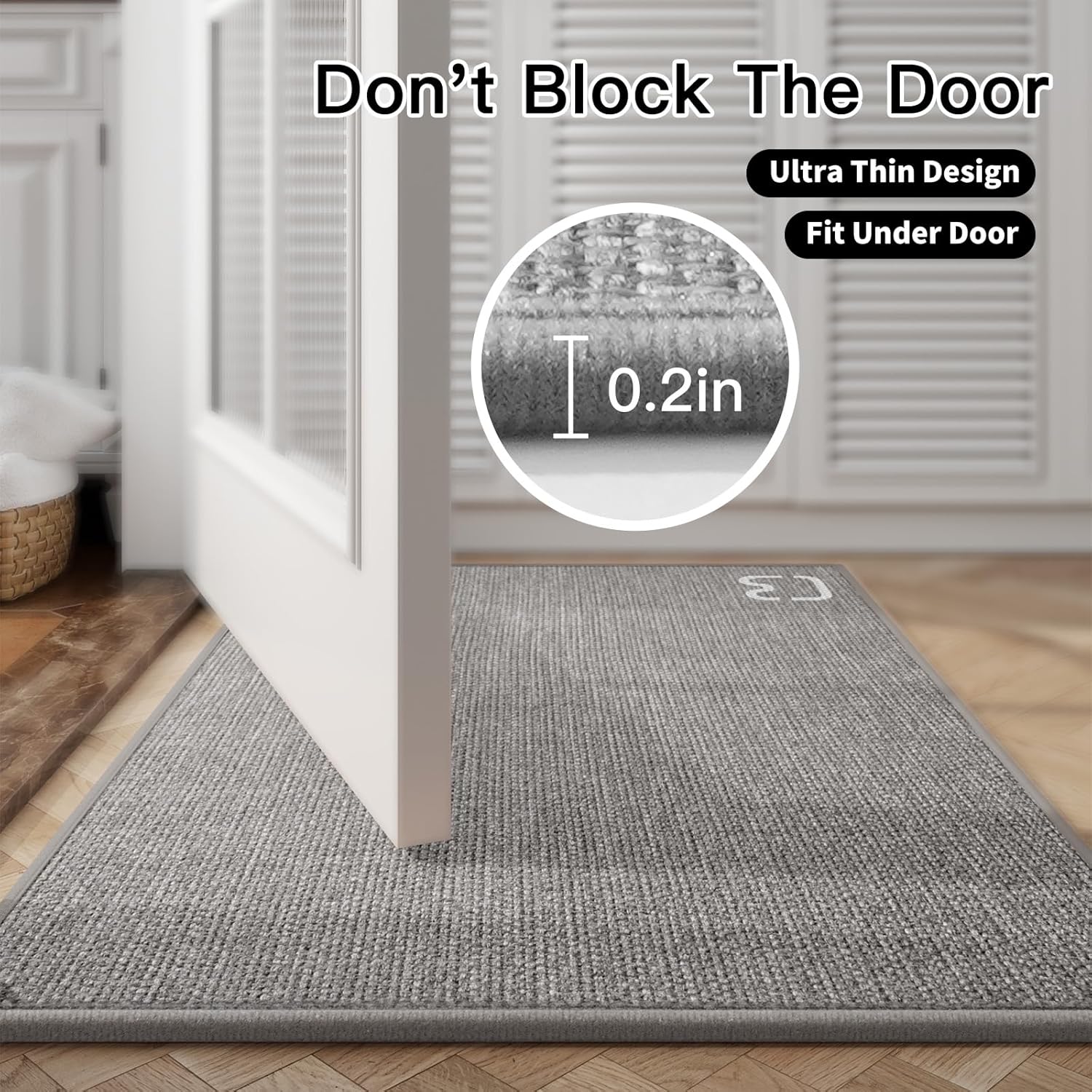 - ULTRA-THIN DESIGN BATH MAT - If you are looking for a bath rug that can fit under the door, here it is. This bathroom mat has a thin enough rubber backing on the bottom to fit under your door. At only 0.2 inches thick, you can place the non-slip bathroom mat behind your door without getting lint caught in the door when you close it. The beautiful cat print on the floor mat also brings more interest to your space.