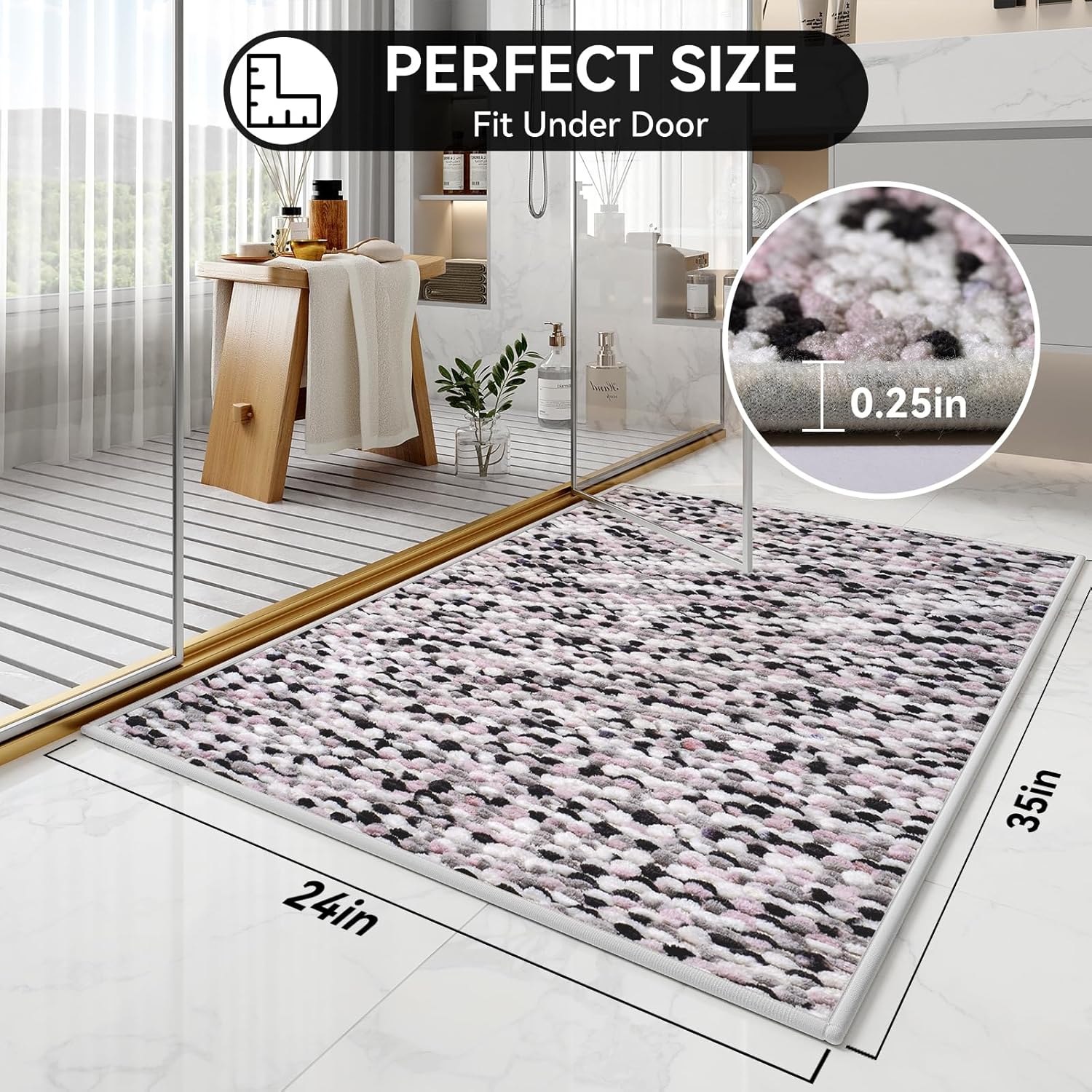 • Versatile Use: Bath mat is ideal for wet-prone areas or cozy foot comfort. Versatile as a laundry room mat, kitchen mat, desk pad, sink front mat, RV bathroom mat, and more