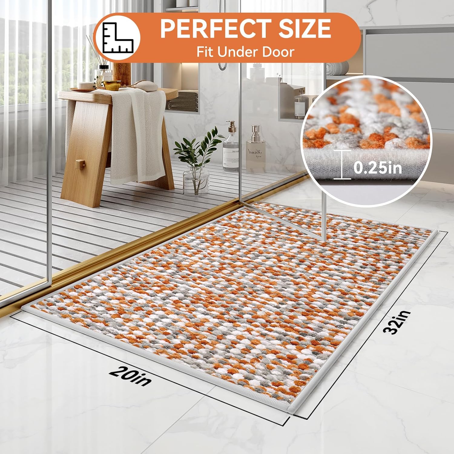 - Quick Dry & Super Absorbent:This chenille material can immediately dry your feet when you step on them, keep the water to stay on and in the mat and not spill over onto the floor,and prevent the floor from getting wet