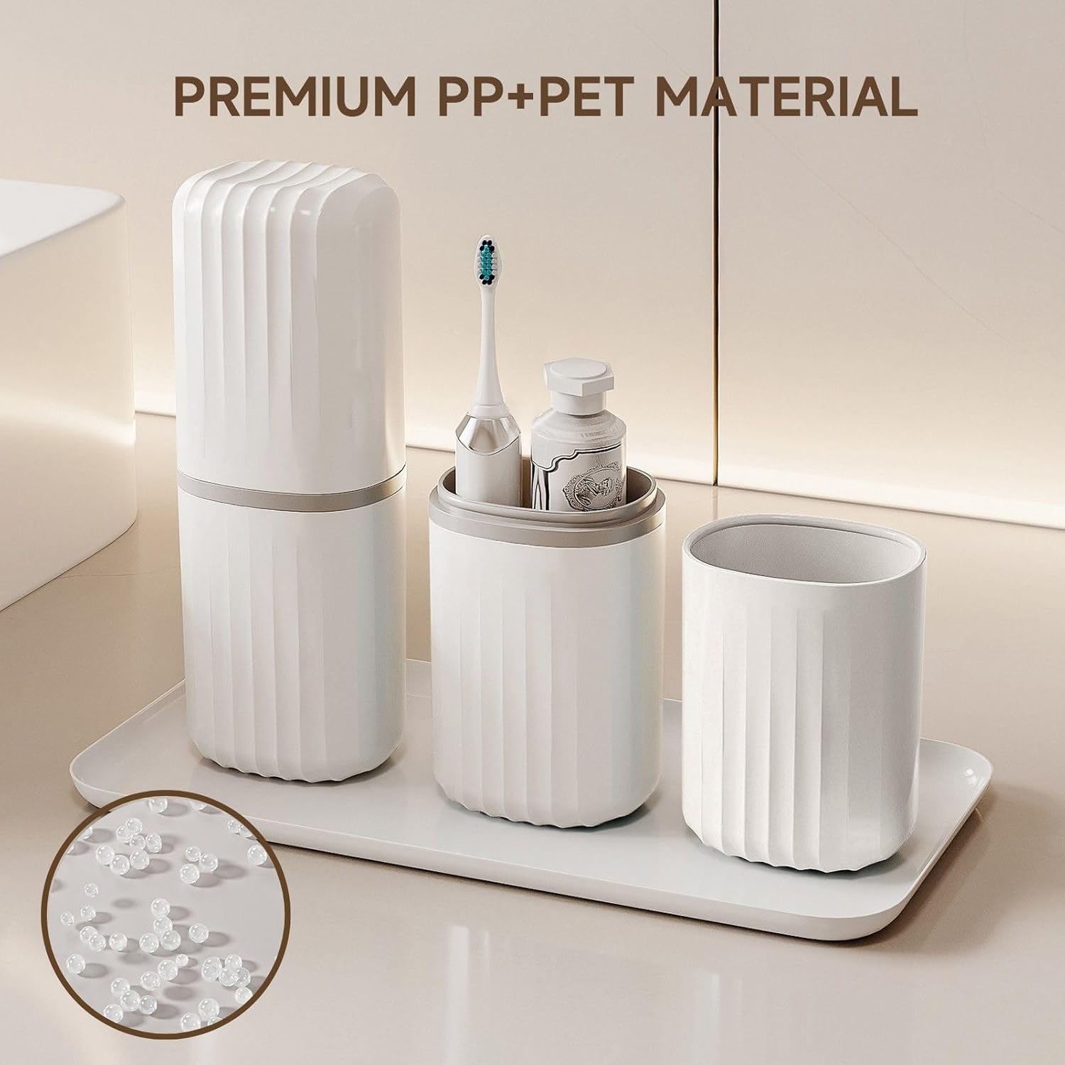 Toothbrush Travel Case, 2 in 1 Toothbrush Holder and Rinse Cup, Large Capacity Toothbrush Cup with Cover, Portable Travel Toothbrush Holder for Traveling, Camping, Trip - 1Pcs - White