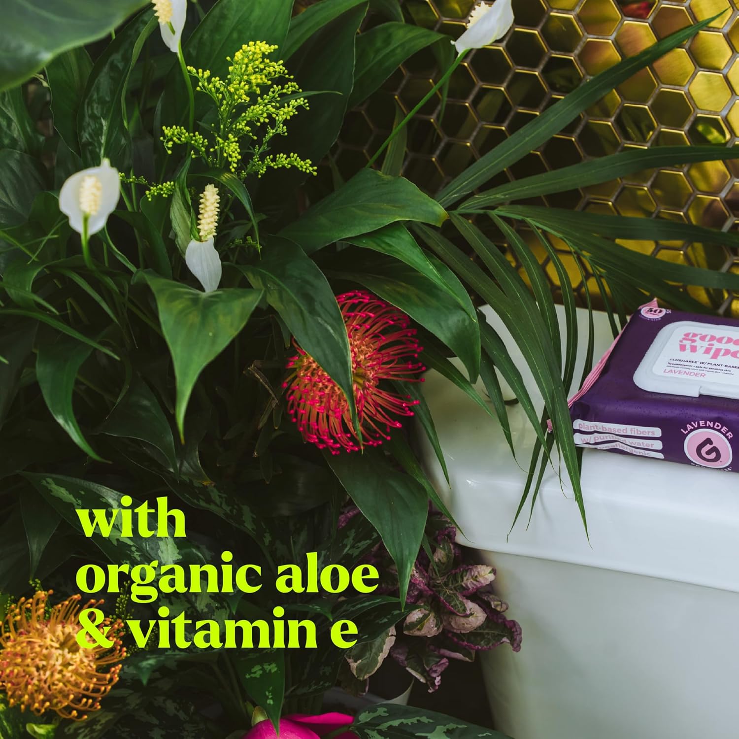 goodwipes Flushable Butt Wipes - Vitamin E & Aloe - Sewer & Septic Safe - Extra Large Adult Wet Wipes For Women & Men - Bathroom Essentials - Lavender, 318 Count (6 Packs + 1 Travel)