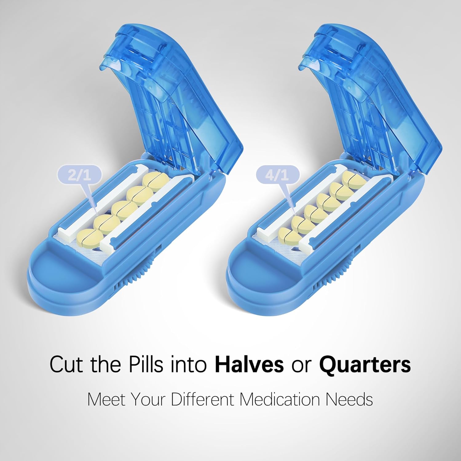 Pill Cutter Splitter for Small and Tiny Pills, Pill Cutter for Small or Large Pills, Pill Splitter for Multiple Pills at a Time with Centering Device and Stainless Steel Blade (Blue)