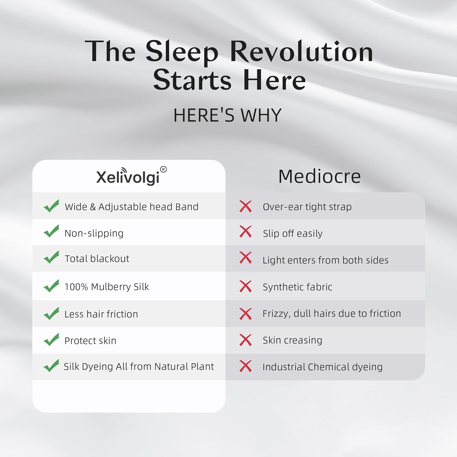 - [ Adjustable Fit for All Head Sizes ] Our silk sleep mask is designed with an adjustable strap, ensuring a secure fit for every head size. No more slipping or discomfort, allowing you to experience restful sleep regardless of your sleeping position.
