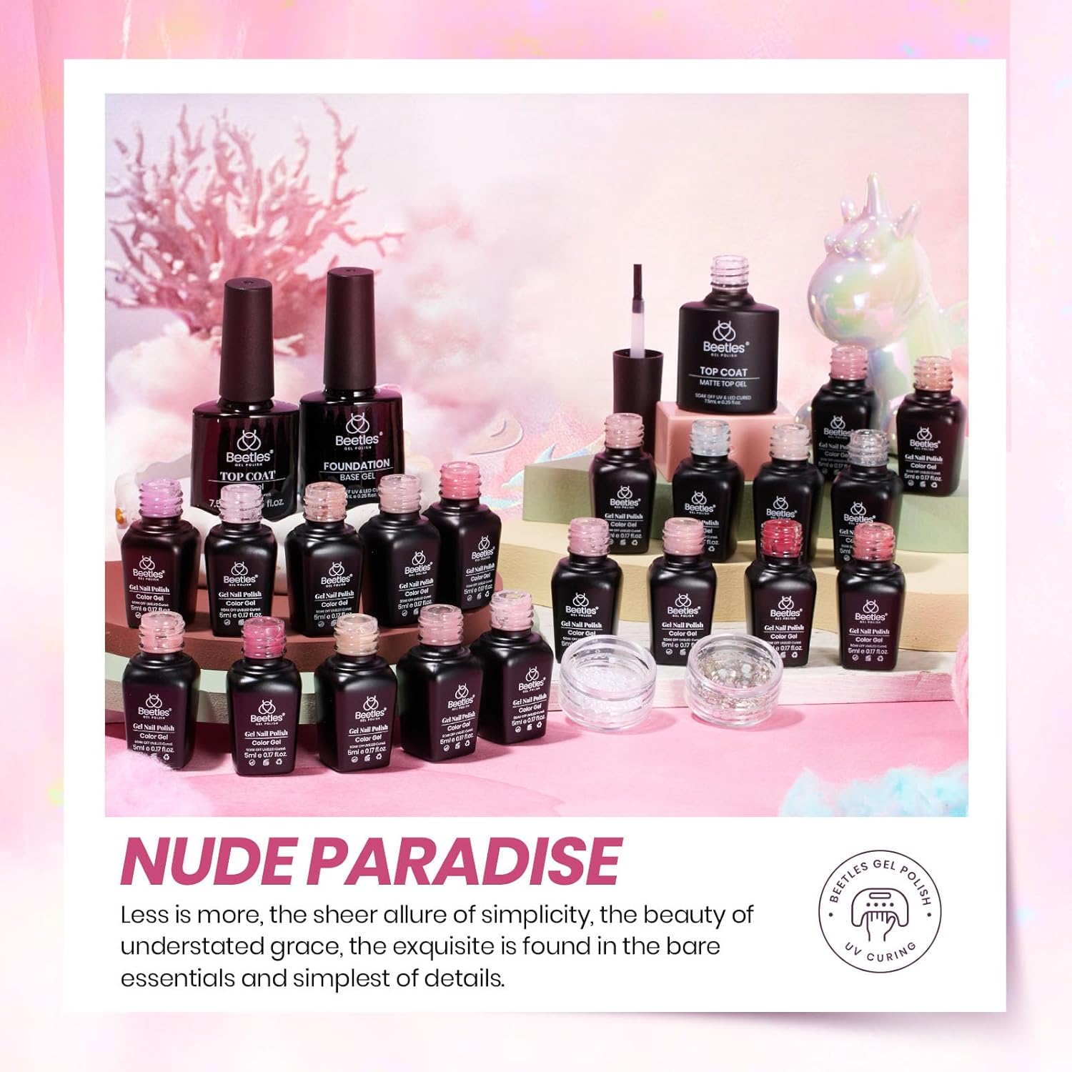 Beetles Nude Pink Gel Nail Polish Set - 25PCS 20 Colors Neutral Jelly Pink Sheer Milky White Gel Nail Kit Soak Off UV with Base Glossy Matte Top Coat Pearls Rhinestones Nail Charms Gift for Women