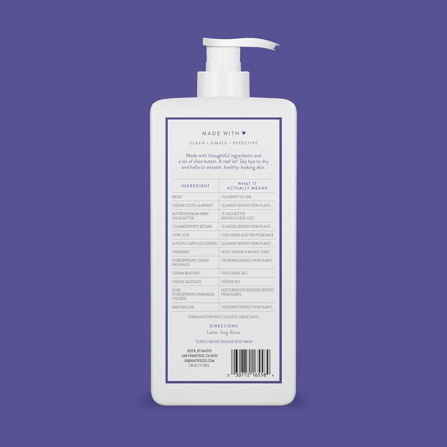 Native Moisturizing Body Wash Contains Naturally Derived Ingredients | For Women & Men, Sulfate, Paraben, & Dye Free Leaving Skin Soft and Hydrated | Night Jasmine & Walnut 18 oz