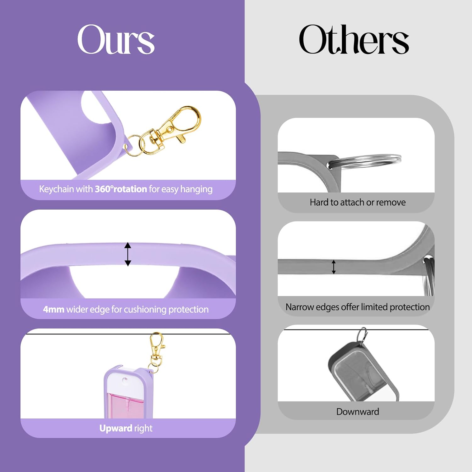• 360° Rotating Keychain for Convenience: Equipped with a keychain featuring 360° rotation, the case can be easily attached to bags, keys, or belts for effortless portability, keeping your hand sanitizer always within reach.